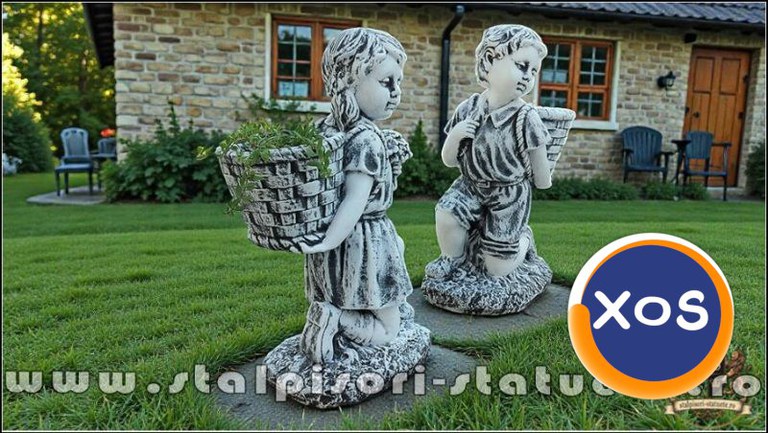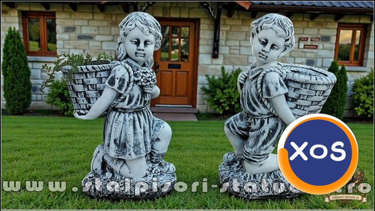 – DETALii TEHNiCE Și iNFORMATiVE PRODUS: – Cod produs: MODEL S91 Preț: 800 lei set. (1 băiețel+1 fetiță.) Detalii Tehnice: Înălțime: 57 cm. Diametru bază: 23x34 cm. Greutate: 42 kg. (set 2 bucăți.) Material: beton aditivat cu agregate concasate. Disponibilitate: din stoc și la comandă. Culori disponibile: auriu antichizat, arămiu antichizat, gri antichizat, alb marmorat. Pentru livrare în ţară la domiciliu prin curier, se trimit colete doar la o valoare de minim 1.000 lei, fără tariful curierului. Livrarea la domiciliu se adaugă tarif curier și cost paletizare. Plata se face în totalitate la sediul firmei, sau în baza unei facturi proforme cu ordin de plată prin virament bancar sau prin aplicaţie de pe telefon. Nu se acceptă plata ramburs ! google: www.stalpisori-statuete.ro