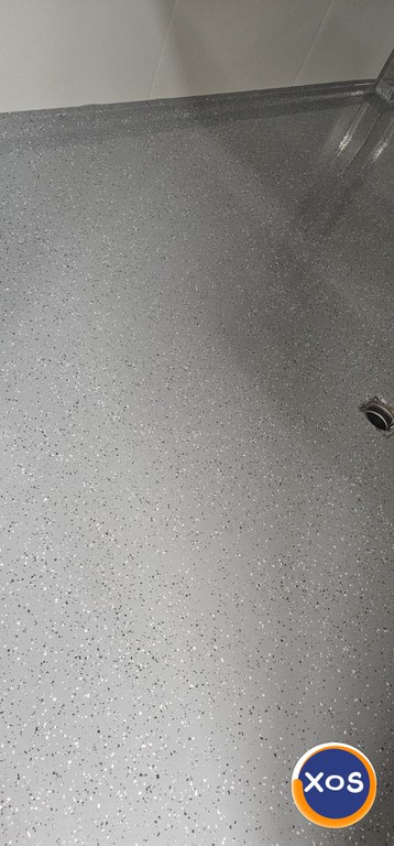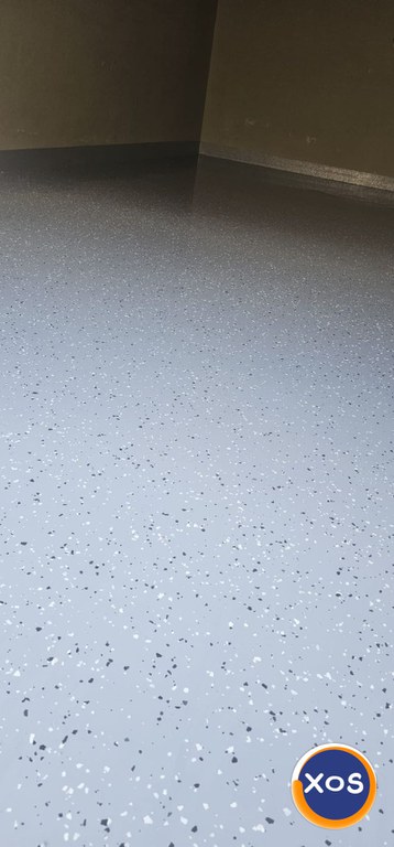 Pardoseală epoxidică cu fulgi decorativi pe orice culoare din paletar .