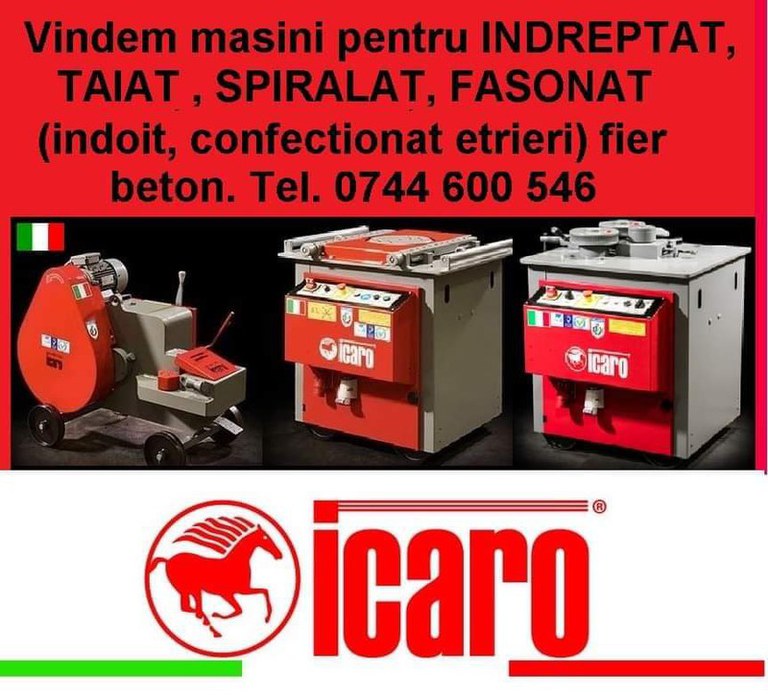 Vindem masini pentru: - INDREPTAT si TAIAT fier beton din colaci - FASONAT (indoit, facut etrieri) fier beton din bara - TAIAT fier beton din bara - fasonat si taiat (combinate) fier beton din bara - SPIRALAT fier beton Relatii la tel. [Telefon]