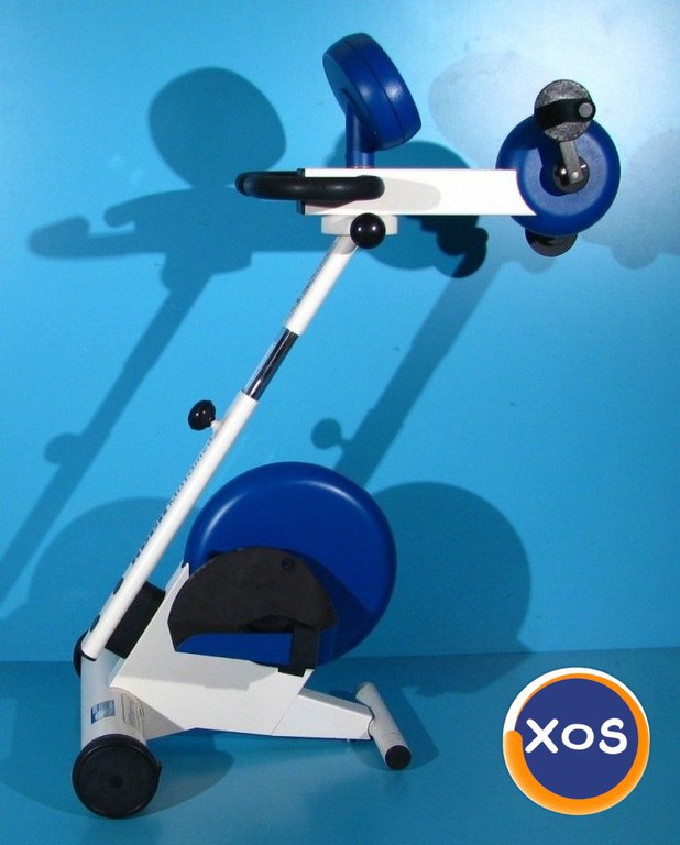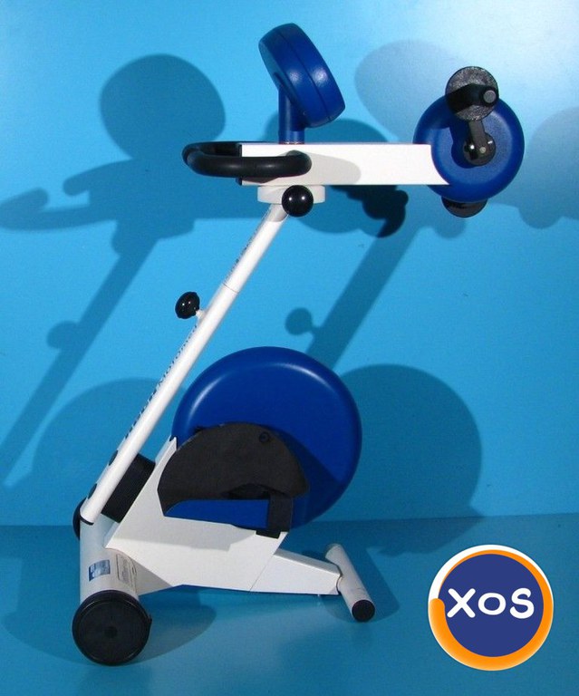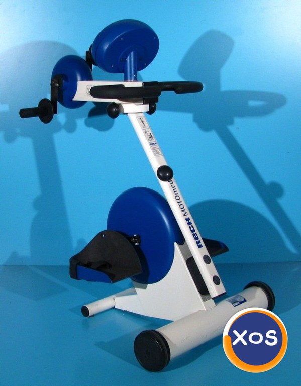 Magazin on-line specializat in comercializarea produselor ortopedice second-hand import Germania vinde: MOTOmed este un aparat de recuperare antispasmic care aduce beneficii importante in scleroza multipla, AVC ( accident vascular cerebral ), paraplegie, tetraplegie, spasticitate, boala Parkinson si alte afectiuni neurologice precum si limitari ale mobilitatii de orice cauza. MOTOmed viva2 maini si picioare este creat pentru un sistem de terapie prin miscare, asistata de un motor,cu caracteristici inteligente de siguranță. Afisaj pe display monocrom cu meniu in limba Germana al programului care se efectueaza (distanta, timp, rotatii/min, greutate...etc) Aparatul de recuperare este dotat cu suporti de prindere talpa cu scai (vezi foto). Diferite programe de recuperare. Reglabil pe inaltime. Indicații / Obiective terapeutice Stimularea mersului Puteți contribui singur la dezvoltarea și menținerea tonusului de bază indispensabil mersului (coordonare, forță muscular și rezistență). Reducerea spasticității Relaxați-vă musculatura spastică, cu tonus muscular crescut sau flască. Folosiți-vă de forța musculară reziduală Redescoperiți-vă forța musculară reziduală, fie blocată de către spasticitate, fie insuficientă pentru o mișcare activă completă și dezvoltați rezistență musculară. Îmbunătățește starea de bine fizica si psihica Mișcarea stimulează corpul și sufletul. Simțiți o stare de bine și eliberați energia benefică. Combateți consecințele deficitului de mișcare cum ar fi: disfuncții circulatorii (în special cele ale picioarelor), blocaje articulare (contracturi), scăderea masei musculare, afectări digestive și urinare, fragilitate osoasă (osteoporoză), edeme, hipertensiune și deficit metabolic (ex. diabet). Starea produsului – folosit ( second-hand ). Aparatul de recuperare este de o calitate foarte buna, fiind produs de una dintre cele mai mari firme de produse ortopedice din Europa. Produsul din fotografie va fi cel pe care il veti primi in eventualitatea unei comenzi. Transportul nu este inclus in pret. Garantie – 12 luni Made in Germania Date tehnice: Inaltime totala reglabila - 105-115 cm Latime – 58 cm Lungime – 82 cm Greutate – 41 kg Viteza de pedalare - 1-60 rot./min Cuplu spastic - 1-20 Tensiune alimentare - 220 - 240 V ~/50 - 60 Hz Consum in functiune – max. 185 watt Sistem de protective – IPXO