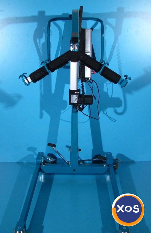Magazin on-line specializat in comercializarea produselor ortopedice second-hand import Germania vinde: Macara pentru pacienți cu acționare electrică – second hand, funcțională și pregătită pentru utilizare imediată. Acest elevator medical pentru pacienți este ideal pentru îngrijirea la domiciliu sau pentru centre medicale, fiind destinat ridicării, coborârii și deplasării persoanelor cu mobilitate redusă. Operarea se face de către un asistent, fiind un dispozitiv sigur și ușor de manevrat. Nu necesită montaj suplimentar. Ridicarea și coborârea pacientului se realizează cu ajutorul unui motor electric de 24V, puternic și fiabil. Macaraua este prevăzută cu o manetă de reglare și este dotată cu 4 roți, dintre care 2 roți spate au sistem de frânare acționat cu piciorul, oferind stabilitate și siguranță în timpul utilizării. Elevatorul pentru persoane cu handicap se vinde fără chinga (hamul) universală. Accesoriu opțional: ham universal pentru elevatorul de pacienți – disponibil separat. Deplasarea liftului se face manual. Dispozitivul este dotat cu buton de urgență, pentru oprire rapidă în caz de nevoie. Include încărcător 220V. Stare produs: folosit (second hand), în stare foarte bună. Acumulatori noi instalați! Notă: firma noastră nu oferă garanție pentru acumulatori, dar putem pune la dispoziție copia facturii de achiziție. Garanția acumulatorilor este oferită exclusiv de furnizorul acestora. Produsul prezentat în fotografii este exact cel pe care îl veți primi în cazul unei comenzi. Transportul nu este inclus în preț. Garanție produs: 12 luni Made in Germania Date tehnice: Greutate suportata – max. 150 kg Latimea maxima a picioarelor in pozitia cea mai ingusta - 65 cm Latimea picioarelor in pozitia cea mai larga - 100 cm Lungime totala - 138 cm Inaltimea de ridicare - 63 - 182 cm Inaltime totala - 128 cm Baterii - 2 x 12V x 5Ah Garda la sol - 12 cm Greutatea produsului - 40 kg