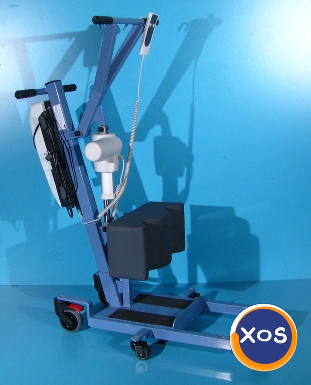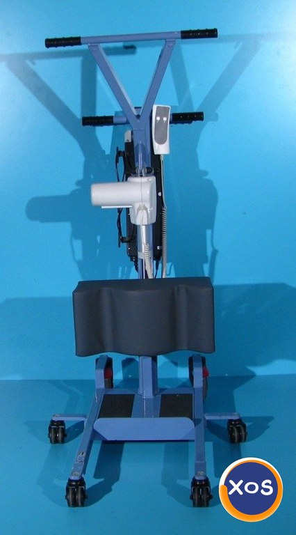 Magazin on-line specializat in comercializarea produselor ortopedice second-hand import Germania vinde: Macara pentru pacienti cu actionare electrica, destinata persoanelor ce nu se pot ridica, nu stapanesc pozitia verticala si nu se pot deplasa singure. Acest dispozitiv de ridicare în picioare, mers, transport și transfer, este potrivit pentru uz casnic, precum și în azilurile de bătrâni și în sectorul medical, oferă atât stimulare, cât și mobilizare. Un pacient poate fi ridicat foarte atent – în conformitate cu tiparele fiziologice de mișcare – dintr-o poziție așezată în una în picioare și poate fi mutat direct în cadă, toaletă sau pat, totul fără efort. În acest fel, sunt antrenate, printre altele, musculatura picioarelor pacientului, simțul echilibrului și circulația. Acest elevator pentru pacienti trebuie operat de catre un asistent pentru ridicare, coborare si deplasare. Platforma de transport si transfer pacient mai poate fi folosita si ca aparat de recuperare, pacientul putand exersa mersul, cat si procesul de asezare-ridicare in mod repetitiv in vederea intaririi muschilor membrelor inferioare. Datorită designului său compact, este ideala pentru utilizarea în spații foarte înguste. Acest lift pentru pacienti are rotile dotate cu sistem de franare pentru picior, si suporti de genunchi reglabili sus-jos. Acest dispozitiv de ridicat si transportat pacienti este dotat cu telecomanda care actioneaza bratul de ridicare. Accesoriu optional: ham universal pentru elevator pacienti. Produsul se vinde fara ham. Acesta se poate achizitiona separat. Incarcator incorporat 220V. Starea produsului – folosit ( second hand ). Liftul pentru pacienti este de o calitate foarte buna. Produsul din fotografie va fi cel pe care il veti primi in eventualitatea unei comenzi. Acumulatorii (bateriile) nu fac obiectul vanzarii acestui produs. Acumulatorii sunt instalati pe elevator pentru proba si nu se cunoaste durata lor de viata iar din aceste motive ACUMULATORII NU AU GARANTIE. Transportul nu este inclus in pret. Garantie 12 luni Made in Germania Date tehnice: Greutatea suportata – 150 kg Latime – 69 cm Inaltime pana la manere – 100 cm Lungime totala – 99 cm Inaltimea minima bratuluii in pozitia coborat – 80 cm Inaltime maxima a bratului in pozitia ridicat– 125 cm Garda la sol - 9 cm Acumulatori - 2 x 12V x 5Ah Greutate produs – 30 kg