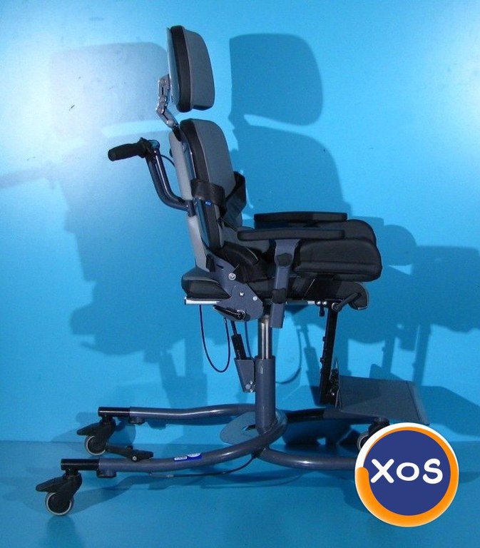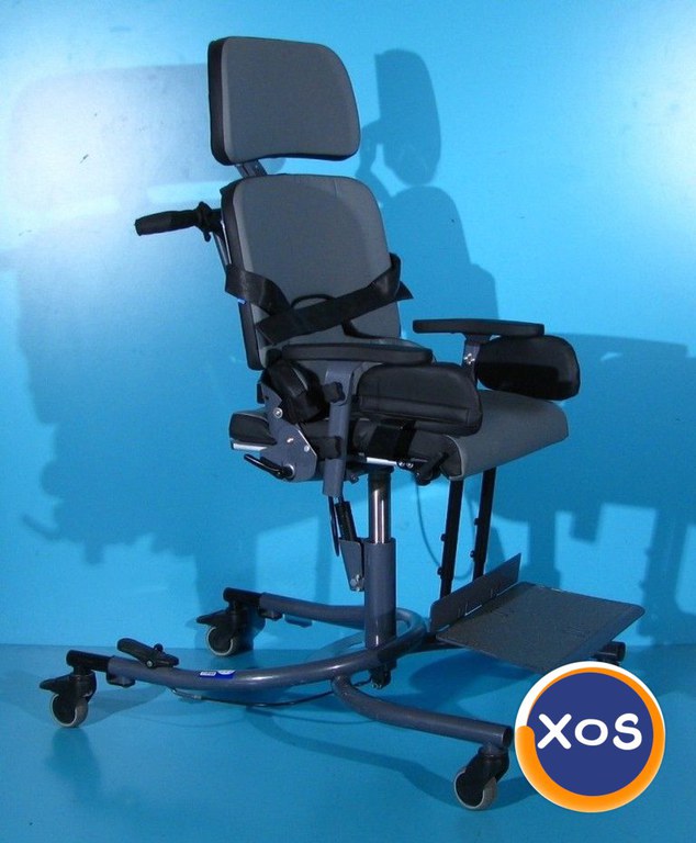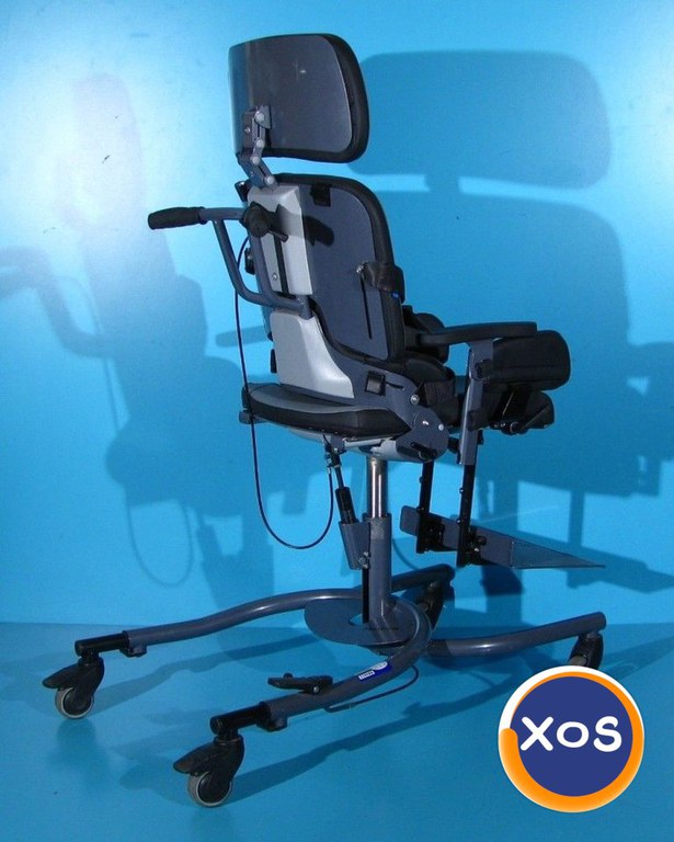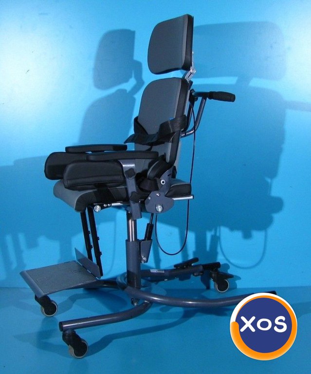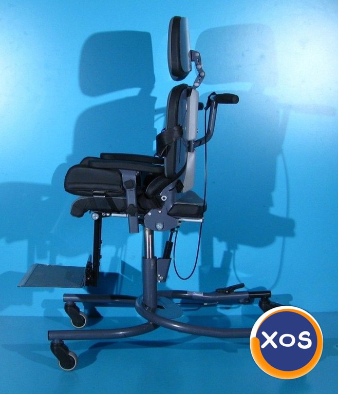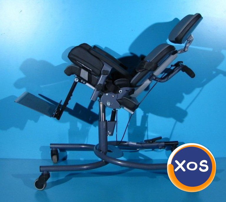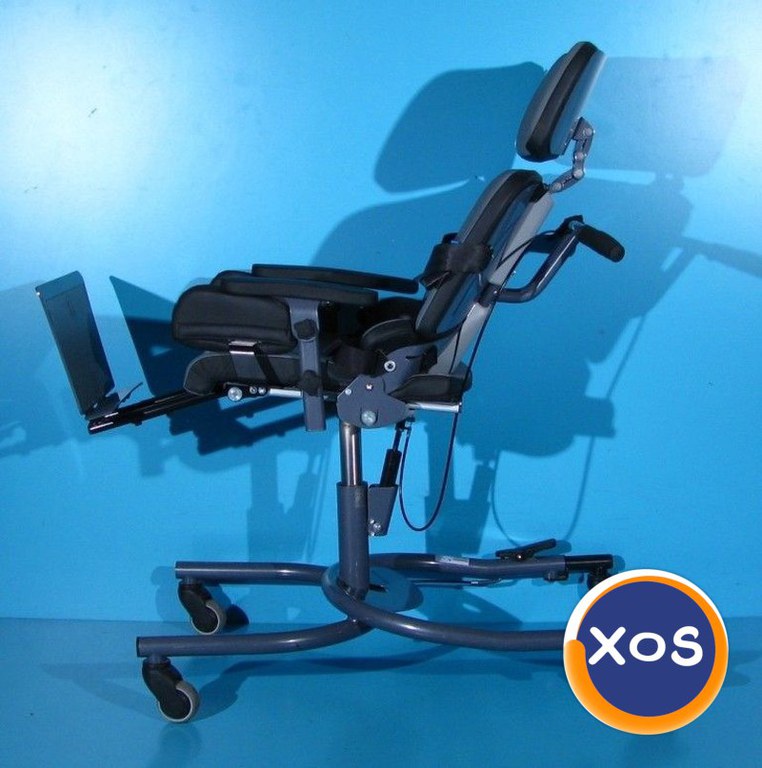 Magazin on-line specializat in comercializarea produselor ortopedice second-hand import Germania vinde: Scaun de pozitionare pentru copii cu handicap second hand este destinat in special pacientilor cu grave afectiuni neuromotorii. Dotari: - scaun reglabil pe inaltime prin piston din maneta actionata cu piciorul - spatarul este reglabil mecanic pe spate pana la 35 grade - sezutul si spatarul sunt rabatabile impreuna pe spate pana la 40 grade prin piston pneumatic - suportul de picioare rabatabil, reglabil sus-jos si la orizontala - centura pelviana - centura pentru torace - frana de picior pe rotile din spate - cotiere reglabile sus-jos si unghiular - laterale reglabile stanga-dreapta - tetiera reglabila sus-jos si fata-spate Starea caruciorului – folosit ( second-hand ). Caruciorul este de o calitate foarte buna, fiind produs de una dintre cele mai mari firme de produse pentru copii cu dizabilitati din Europa. Produsul din fotografie va fi cel pe care il veti primi in eventualitatea unei comenzi. Transportul nu este inclus in pret. Garantie - 12 luni Made in Germania Date tehnice: Latime sezut – 40 cm Adancime sezut reglabila - 32-42 cm Latime totala – 55 cm Greutate suportata – 65 kg Inaltime de la sol pana la manere reglabila – 87-97 cm Inaltime de la sol pana la sezut reglabila – 50-60 cm Inaltime de la sezut pana la spatar reglabila – 43-55 cm Dimensiune interioara torace reglabila - 25-30 cm Lungime totala – 92 cm Lungime cu suportii de picioare rabatati - 90 cm Greutate produs - 29 kg