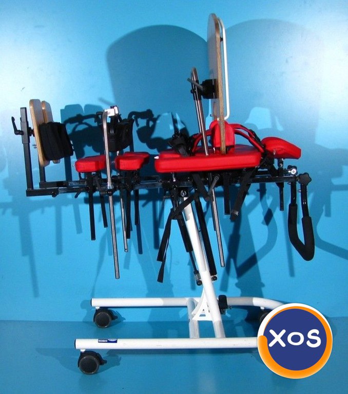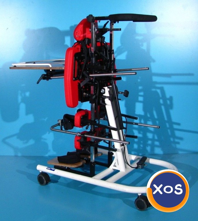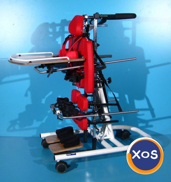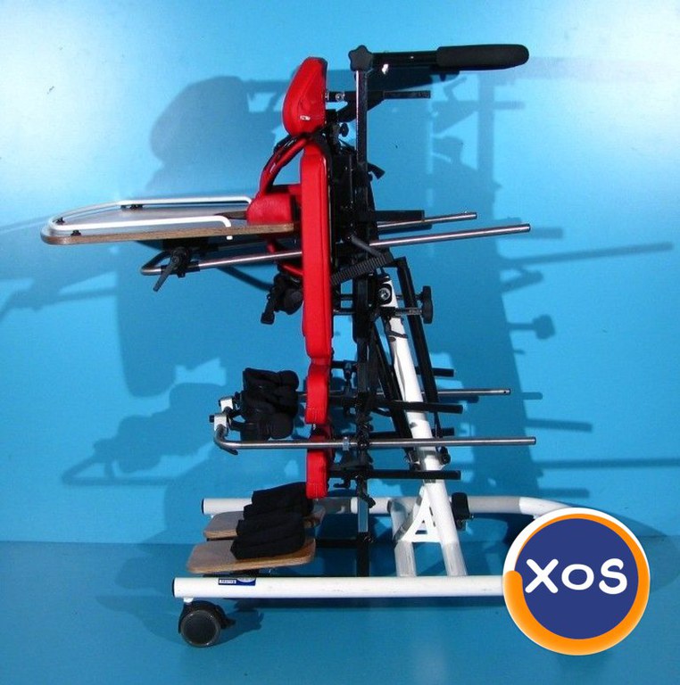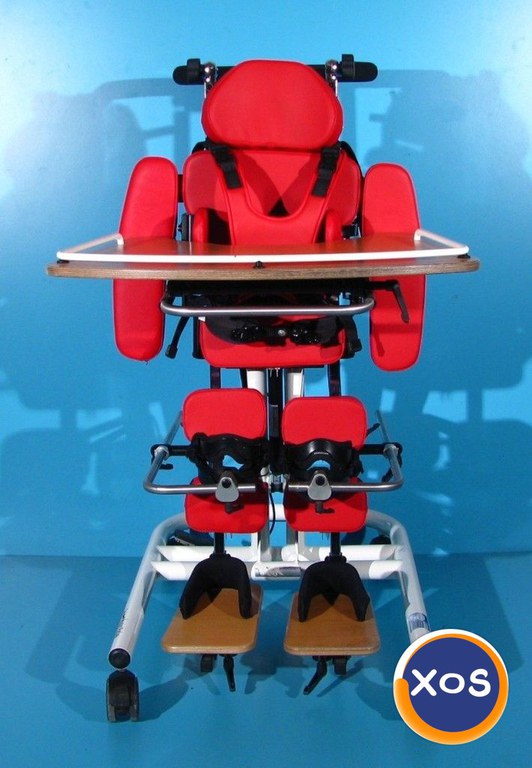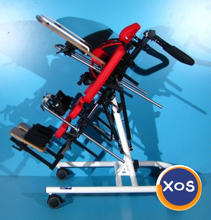 Magazin on-line specializat in comercializarea produselor ortopedice second-hand import Germania vinde: Verticalizator dinamic activ cu rotile pentru copii , este recomandat in urmatoarele cazuri: Paralizie cerebrală infantilă - diferite forme. Meningomiolocel. Vătămări ale creierului şi măduvei spinării. Boli ale muşchilor - diferite forme. Sindroame genetice care provoacă pareză. După vătămări ale creierului, traumă spinală şi a gambelor, precum şi traume ale coloanei vertebrale. Verticalizatorul este o parte importanta a multor terapii. Pozitia verticala ajuta la intinderea muschilor si tendoanelor pentru a se evita eventualele contractii, imbunatateste circulatia sangelui, extinde cavitatea abdominala pentru ca procesele respiratorii si digestive sa functioneze usor si ajuta la evacuarea tractului rectal. Cu ajutorul verticalizatorului, pacientul poate sta in picioare in siguranta, avand stabilitate si independenta. Acest verticalizator activ dinamic este sigur, fiabil si facil de reglat acoperind toate nevoile oricarui copil sau adolescent oferindu-i acestuia libertatea de miscare. Pozitia verticala oferita de acest verticalizator permite pacientului sa fie un participant activ si independent in acelasi timp in mediul sau. Design modern si simplu ce garanteaza mobilitate maxima a utilizatorului. Dotari: Reglarea in plan orizontal se face hidraulic prin piston Masuta detasabila, reglabila sus/jos, fata/spate, si unghiular Ham, centura pelviana Tetiera reglabila sus/jos, fata/spate, si detasabila Suporti brate reglabili stanga/dreapta Suporti picioare reglabili pe inaltime, fata/spate, si stanga/dreapta Suporti sustinere genunchi reglabili stanga/dreapta, fata/spate si sus/jos, si unghiular Suporti sustinere torace reglabili sus/jos, stanga/dreapta Suport sustinere bazin reglabil fata/spate, sus/jos Reglaj pe inaltime pentru o pentru o pozitionare corecta in el datorita suportilor pentru zona toracica, lombara respectiv a genunchilor Frana de picior pe toate cele 4 roti Starea verticalizatorului – folosit ( second-hand ). Produsul din fotografie va fi cel pe care il veti primi in eventualitatea unei comenzi. Transportul nu este inclus in pret. Garantie - 12 luni Made in Germania Date tehnice: Greutate suportata - necunoscuta Reglarea inclinării - 0° - 90° Inaltime pana la manere - 110 cm Inaltime totala de la sol la tetiera reglabila - 110-135 cm Inaltime de la suportii de picioare la spatar reglabila - 80-100 cm Inaltime de la suportii de picioare la tetiera reglabila - 95-120 cm Inaltime de la suportii de picioare la masuta reglabila - 65-75 cm Inaltime in pozitia orizontala de la sol la pat - 80 cm Lungime totala - 90 cm Latime totala - 56 cm Dimensiune interioara suporti torace reglabila - 16-26 cm Dimensiune interioara suporti genunchi - 8 cm Dimensiune masuta - 63 x 33 cm Greutate produs - 43 kg