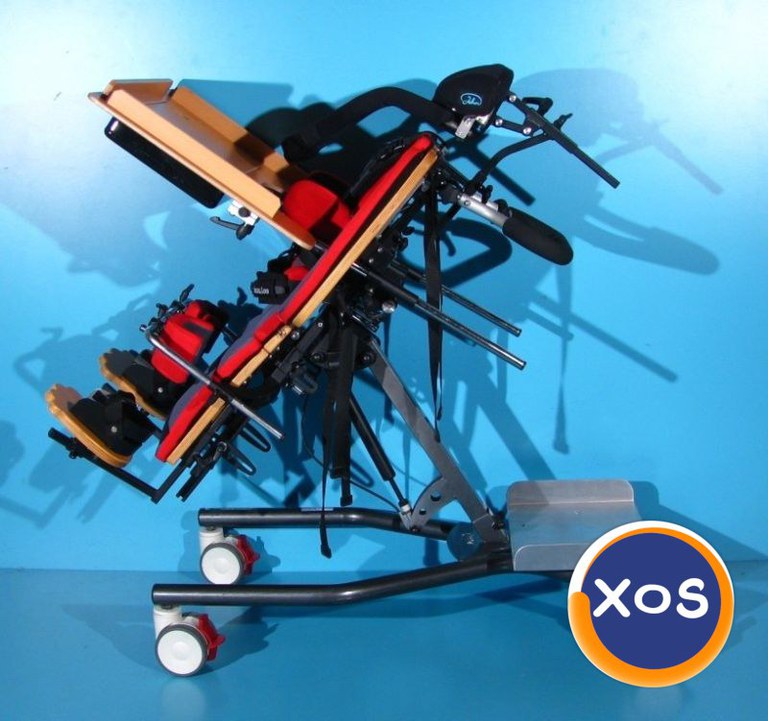 Magazin on-line specializat in comercializarea produselor ortopedice second-hand import Germania vinde: Sistemul de verticalizare Lasse ofera oportunitati de ajustare lina a pozitiei corpului unui pacient sau persoane cu dizabilitati cu pierderea functiilor motorii si stapanirea unei pozitii in picioare. Cu ajutorul unui astfel de verticalizator, muschii sunt activati, antrenati, iar organele interne si sistemul circulator sunt obisnuiti cu pozitia naturala a corpului. Designul acestui verticalizator este potrivit in special pentru copiii bolnavi care se pot antrena cu el si pot lua parte activ la diferite activitati de socializare. Designul ofera posibilitatea de a selecta ajustarile optime ale inaltimii si unghiului de inclinare si, de asemenea, fixeaza in mod fiabil persoana intr-o pozitie verticala si o impiedica sa alunece. Caracteristici : - diverse ajustari ale inaltimii, latimii si unghiului de inclinare asigura o fixare in siguranta a unei persoane intinse pe spate si fac posibil ca utilizatorul sa comunice activ cu oamenii din jurul sau - reglabil pana in pozitie orizontala prin piston pneumatic - tetiera reglabila sus/jos, fata/spate si prevazuta cu suporti sustinere gat - masuta detasabila, reglabila fata/spate, si unghiular - suporti sustinere torace reglabili sus/jos, stanga/dreapta, si rabatabili - suporti bazin reglabili fata/spate, sus/jos si stanga/dreapta - suporti sustinere genunchi reglabili sus/jos, fata/spate, stanga/dreapta - ham, centura de siguranta - suportii pentru picioare reglabili sus/jos, fata/spate, unghiular, cu posibilitatea flexare a genunchilor in fata Verticalizator dotat cu frane pe toate cele 4 roti. Stare verticalizator – folosit ( second-hand ). Produsul din fotografie va fi cel pe care il veti primi in eventualitatea unei comenzi. Transportul nu este inclus in pret. Garantie – 12 luni Made in Germania Date tehnice: Greutate suportata - necunoscuta Reglarea inclinării - 0° - 90° Inaltime totala de la sol reglabila - 115-135 cm Inaltime pana la manere reglabila - 90-110 cm Inaltime de la suportii de picioare la tetiera reglabila - 90-115 cm Inaltime in pozitia orizontala de la sol la pat - 75 cm Lungime totala - 100 cm Latime totala - 55 cm Dimensiune interioara suporti torace reglabila - 15-24 cm Dimensiune interioara suporti bazin reglabila - 17-22 cm Dimensiune interioara suporti genunchi - 7 cm Dimensiune masuta - 60 x 46 cm Flexarea genunchiilor - 20 grade Greutate produs - 40 kg