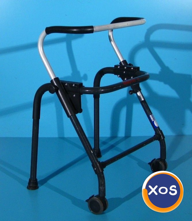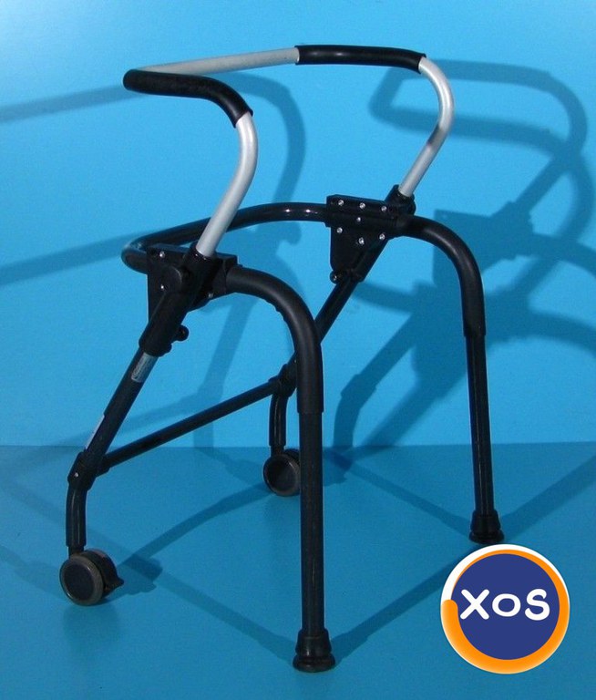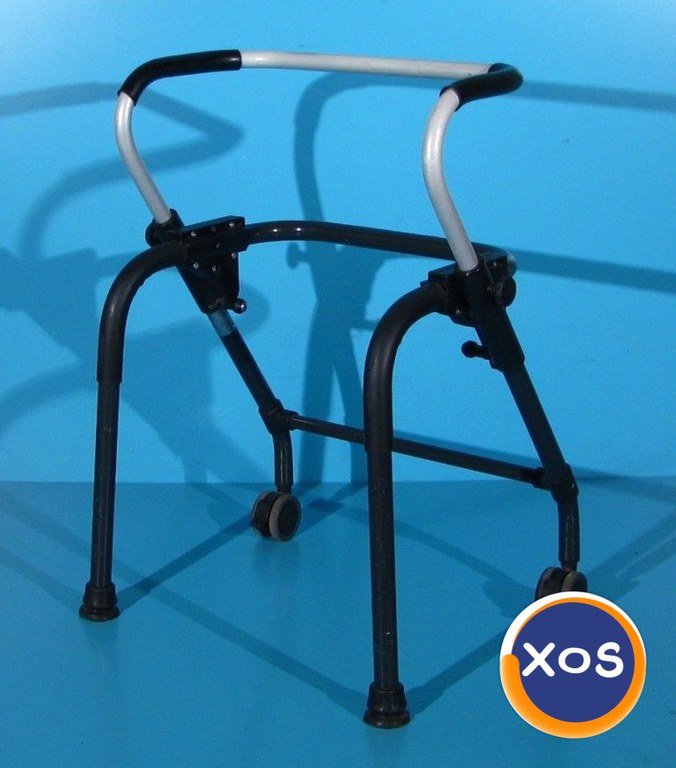 Magazin on-line specializat in comercializarea produselor ortopedice second-hand import Germania vinde: Acest cadru de mers cu 2 roti fata este destinat persoanelor cu mobilitate scazuta, echilibru precar, conditie fizica slaba sau deficiente in deplasarea pe picioare sau pentru batrani. Doua roti frontale prevazute cu frana de picior faciliteaza deplasarea mersului, iar doua picioare cu varfuri de cauciuc care nu marchează podeaua, asigura stabilitatea mersului. Cadru de ajutor are cadrul din aluminiu, este pliabil facandu-l usor de manevrat/transportat/depozitat. Este ideal pentru cumparaturi, plimbari si alte activitati, oferind utilizatorului posibilitatea de mentinere sau recuperare progresiva a mersului, independent de prezenta unei persoane insotitoare. Acest cadru pentru batrani se poate regla pe inaltime in raport cu statura utilizatorului. Este conceput cu un design moder si este realizat din materiale de inalta calitate. Poate fi utilizat in interiorul cat si exteriorul locuintei. Cadrul prezinta zgarieturi (vezi foto). Starea cadrului – folosit ( second-hand ). Rolatorul este de o calitate foarte buna, fiind produs de una dintre cele mai mari firme de produse ortopedice din Europa. Produsul din fotografie va fi cel pe care il veti primi in eventualitatea unei comenzi. Transportul nu este inclus in pret. Garantie - 12 luni Made in Germania Date tehnice: Latime totala - 62 cm Greutate suportata - 120 kg Inaltime totala reglabila - 78 - 98 cm Lungime totala - 46 cm Dimensiune intre manere - 48 cm Greutate totala - 4 kg
