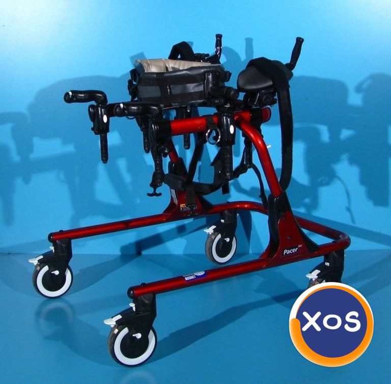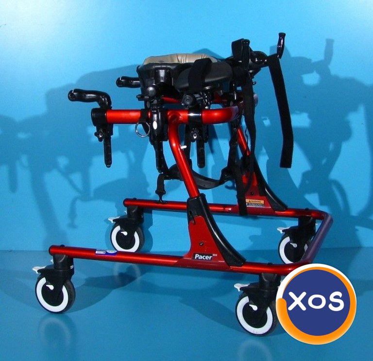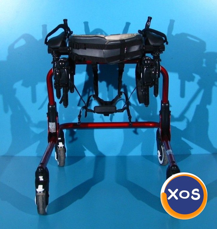 Magazin on-line specializat in comercializarea produselor ortopedice second-hand import Germania vinde: Cadrul de mers cu roti pliabil pentru copii sustine exercitiile terapeutice pentru a invata miscarile naturale si dezvoltarea echilibrului. Formatorul de mers asigură un sprijin remarcabil în procesul de învăţare a mersului, menţinerea impulsului și consolidarea abilităţilor muşchilor. Rotilele unice, multi-funcţionale fac totul: Glisare variabilă pe fiecare roata: Utilizați această funcţie pentru a încetini utilizatorul care se mişcă rapid, pentru împiedicarea direcţiei sau pentru al ajuta să navigheze pe la colţuri. Variaţi glisarea prin rotirea selectorului de la zero la maxim. Frâne pe toate cele 4 roti: Independente de funcţia de glisare. Pentru aplicare, apăsaţi partea de jos a pedalei frânei de culoare albă. Blocarea rotilei pivotante: Fiecare rotilă are blocare independentă. Blocaţi toate cele 4 rotile pentru a ajuta utilizatorul să se deplaseze în linie dreaptă, sau doar cele două rotile din spate pentru a elimina schimbarea direcţiei laterale. Eliberarea blocării pivotante pe toate rotilele pentru mişcarea în orice direcţie. Funcţionează optim si atunci când rotilele sunt in sistem de blocare a pivotării. Manerele sunt ajustabile pe inaltime pentru a stabili pozitia corecta a utilizatorului. Premergatorul este prevazut cu suport pelvian (sa) reglabil pe inaltime. Cadrul de mers are schelet din aluminiu, vopsit epoxi. Starea rolatorului – folosit ( second-hand ). Produsul este de o calitate foarte buna, fiind produs de una dintre cele mai mari firme pentru produse ortopedice din Europa. Produsul din fotografie va fi cel pe care il veti primi in eventualitatea unei comenzi. Transportul nu este inclus in pret. Garantie – 12 luni Made in USA Date tehnice: Greutate utilizator maxim - 68 kg Inaltimea pana la manere (reglabila) - 86-98 cm Inaltime pana la manerele de ridicare din pozitia sezut (reglabila) - 71 - 83 cm Inaltime pana la suport torace (reglabila) - 78 - 90 cm Latime totala - 66 cm Lungime - 90 cm Dimensiune suport torace reglabila max. 30 cm Dimensiune roti - 140 x 40 Greutate produs - 14,5 kg