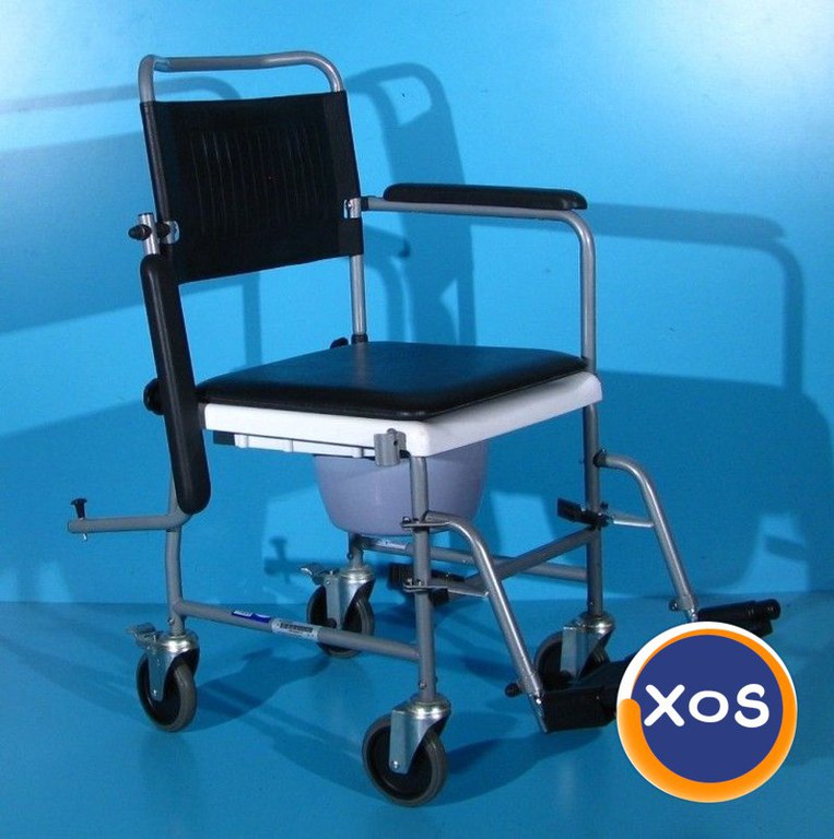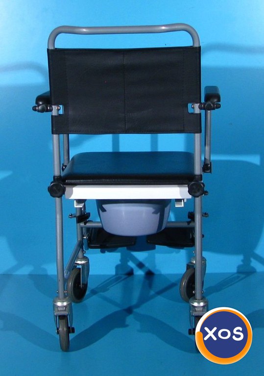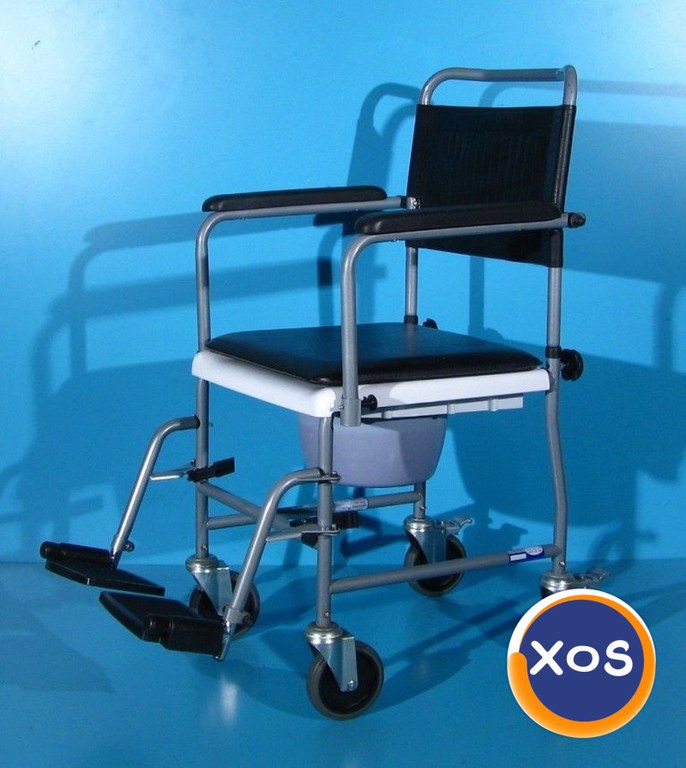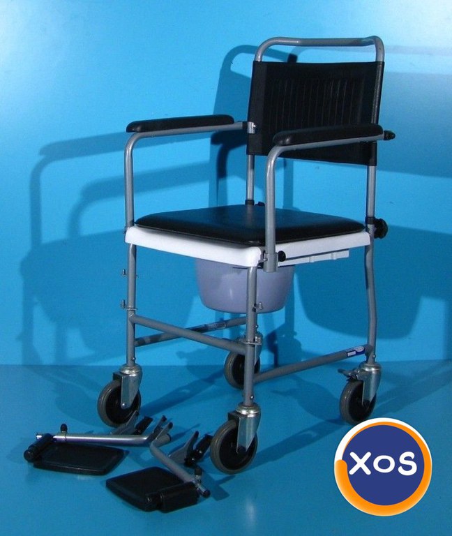 Magazin on-line specializat in comercializarea produselor ortopedice second-hand import Germania vinde: Scaun handicap cu wc (toaleta), cu rotile destinat persoanelor cu nevoi speciale. Acest carucior cu wc poate fi folosit in locuinta si ca scaun cu rotile. Manere rabatabile ce pot usura urcarea si coborarea de pe scaun. Rotile permit deplasarea deasupra vasului de toaleta. Rotile din spate sunt dotate cu frana de picior pentru mai multa stabilitate in manevrare. Sezutul si spatarul sunt tapitate si lavabile ( se spala fara a-si pierde calitatile ). Vasul de toaleta, spatarul si sezutul sunt detasabile. Suportii de picioare sunt rabatabili si detasabili. Scaunul cu toaleta are cadrul din otel. Starea caruciorului – folosit ( second-hand ). Scaunul cu WC este de o calitate foarte buna, fiind produs de una dintre cele mai mari firme de produse ortopedice din Europa. Produsul din imagine este doar de prezentare. In eventualitatea unei comenzi veti primi unul identic ca: marca, dimensiuni, forma, culoare, greutate, uzura. Garantie 12 luni Made in Germania Date tehnice: Latime sezut – 45 cm Latime totala - 56 cm Greutate suportata - 130 kg Inaltime totala - 98 cm Lungime totala - 85 cm Lungime fara suportii de piciore - 58 cm Inaltime pana la sezut - 53 cm Diametru roti - 125x25 cm Greutate totala - 13 kg