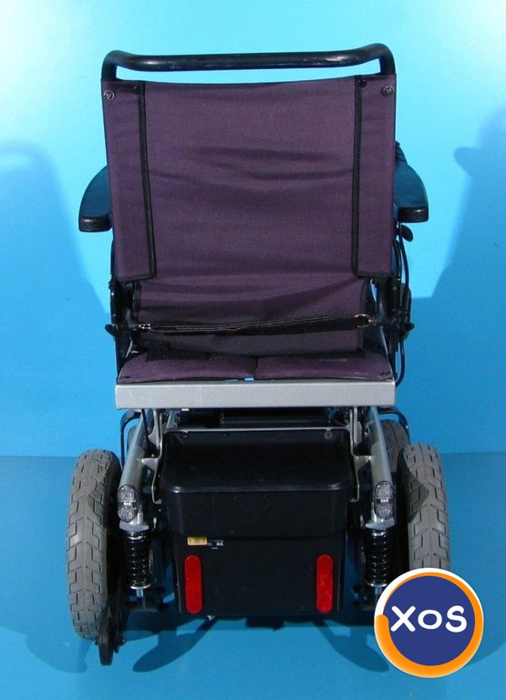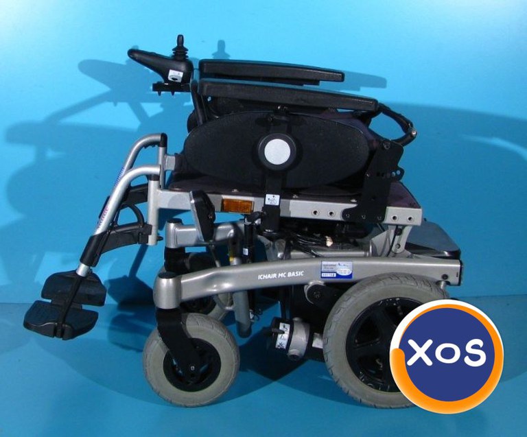 Magazin on-line specializat in comercializarea produselor ortopedice second-hand import Germania vinde: Scaun cu rotile second hand cu comanda pe joystick destinat persoanelor cu handicap si persoanelor cu deficiente locomotorii. Caruciorul electric este conceput pentru a oferi siguranta si confort, si dispune de un sistem de semnalizare si iluminare astfel incat poate fi folosit pe drumurile publice. Joystick-ul se poate muta pe oricare din parti ( mana stanga sau mana dreapta ), in functie de posibilitatea de manevrare a utilizatorului. Dotari: spatarul este rabatabil mecanic pe spate pana la 15 grade si total pe fata laterale detasabile roti spate antirasturnare centura de siguranta lumini, semnalizari, avarii, claxon tractiune pe spate prin motoare independente incarcator 220v Starea produsului – folosit ( second hand ). Caruciorul electric este de o calitate foarte buna. Produsul din fotografie va fi cel pe care il veti primi in eventualitatea unei comenzi. Acumulatorii (bateriile) nu fac obiectul vanzarii acestui produs. Acumulatorii sunt instalati pe carucior pentru proba si nu se cunoaste durata lor de viata iar din aceste motive ACUMULATORII NU AU GARANTIE. Transportul nu este inclus in pret. Garantie – 12 luni Made in Germania Date tehnice: Greutate suportata – max. 120 kg Viteza maxima – 6 km/h Latime scaun – 43 cm Latime totala – 60 cm Lungime totala – 107 cm Lungime fara suportii picioare - 86 cm Inaltime pana la manere - 96 cm Inaltime sezut - 48 cm Dimensiune roti mari - 12.5 x 2.50-8 Dimensiune roti mici - 9 x 3.00-4 Baterii – gel 2 x 12V x 45Ah Greutatea caruciorului gol – 100 kg