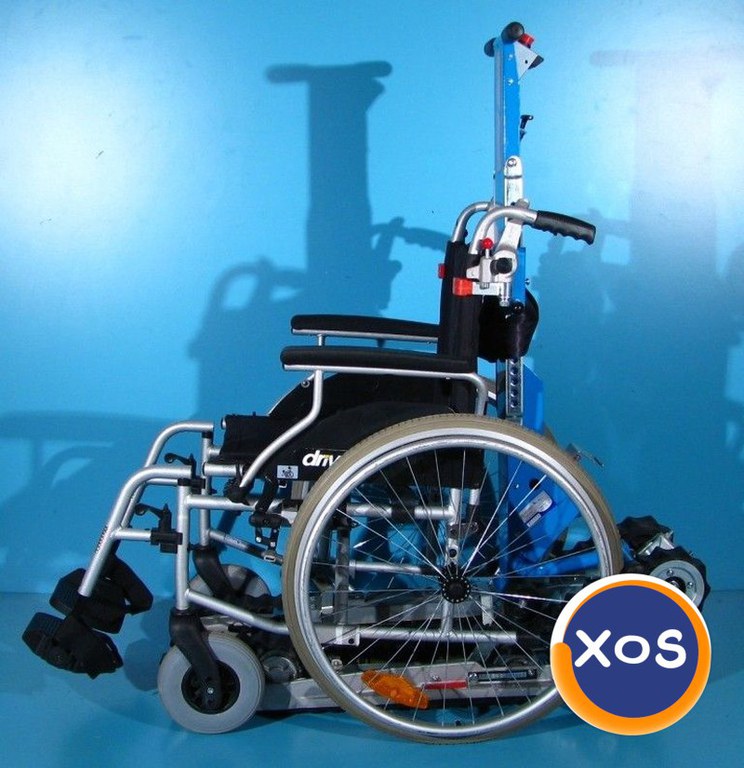 Magazin on-line specializat in comercializarea produselor ortopedice second-hand import Germania vinde: Elevator cu senile de urcat/coborat scari pentru persoane cu handicap locomotor sau deficiente in deplasare. Un îngrijitor poate folosi cu ușurință acest ascensor scări, care nu necesită nici o aplicație de perete fix, pur și simplu activand comenzile electrice ale vehiculului. Structura sa permite demontarea celor două părți putand fi ușor de încărcat și transportat cu mașina. Suportul de prindere al scaunului este reglabil pe latime. Produsul este prevazut cu centura de siguranta si buton in caz de urgenta. Elevatorul cu senile se adapteaza la orice scaun cu rotile si anumite carucioare electrice, care sa aiba o latime maxima a cauciucurilor (fara cercuri) de 64 cm. Elevatorul se vinde fara scaun. Incarcator 12V 5Ah. Starea produsului – folosit ( second hand ). Liftul pentru pacienti este de o calitate foarte buna. Produsul din fotografie va fi cel pe care il veti primi in eventualitatea unei comenzi. Acumulatorii sunt noi si au fost instalati pe produs dar firma noastra nu acorda garantie acestora. La cerere firma noastra poate pune la dispozitie o copie a facturii de achizitie a acestor acumulatori iar in caz de garantie numai firma care a comercializat acumulatorii va poate oferi garantia. Transportul nu este inclus in pret. Garantie 12 luni Made in Germania Date tehnice: Greutate suportata max. – 130 kg Inaltime max. treapta - 19 cm Lungime totala - 147 cm Lungime pliat - 140 cm Latime totala dispozitiv – 64 cm Inaltime pana la manere – 94 cm Baterii – 2 x 12V x 7Ah Înclinarea scării max. - 35 grade Greutatea dispozitivului – 53 kg
