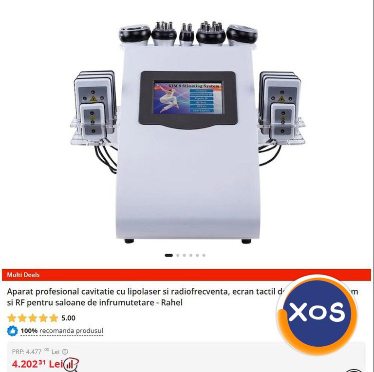 - Multiple funcții configurabile: cavitație, radiofrecvență, vacuum, lipolaser.