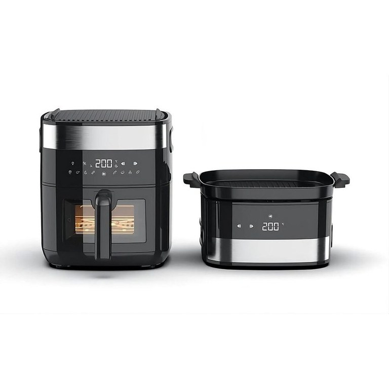 Friteuză cu aer cald AERIUM CrispChef FA100 Multi AERIUM CrispChef FA100 Multi este un dispozitiv multifuncțional, care combină gătitul sănătos, designul modern și operarea ușoară. Cu o capacitate de 5 litri, o putere de 1900 W și o temperatură maximă de până la 230°C, puteți pregăti o gamă largă de mâncăruri rapid și eficient. Ideal pentru oricine dorește să gătească delicios și sănătos, fără ulei inutil. Prin ce se evidențiază AERIUM CrispChef FA100 Multi? 1. Ajutor multifuncțional 2-în-1 Aparatul oferă o combinație de friteuză cu aer cald și grătar, ceea ce îl face alegerea ideală pentru orice gospodărie. Datorită modului special de grătar, veți obține rezultate perfecte atunci când pregătiți fripturi, legume sau alte preparate la grătar. Friteuza poate gestiona chiar și bunătăți prăjite, cum ar fi chipsurile, cu ulei minim - gătitul sănătos nu a fost niciodată mai ușor. 2. Operare simplă pentru toată lumea Datorită panoului de control LED intuitiv, puteți regla cu ușurință timpul și temperatura pentru a se potrivi rețetei dvs. Temporizatorul poate fi setat de la 1 la 60 de minute, iar temperatura variază între 80-200°C, cu grill-ul atingând până la 230°C. Cele opt programe prestabilite vă economisesc timp și asigură rezultate perfecte, fără setări complicate. 3. Întreținere ușoară și funcționare sigură AERIUM CrispChef FA100 Multi este proiectat pentru a face întreținerea cât mai ușoară. Recipientul detașabil și tava de copt pot fi spălate în mașina de spălat vase, economisind timp după gătit. Oprirea automată și construcția durabilă asigură o utilizare sigură, chiar și la temperaturi ridicate. 4. Mâncăruri gustoase ușor și sănătos Cu AERIUM CrispChef FA100 Multi, obțineți un ajutor versatil care facilitează prepararea alimentelor de zi cu zi. Combinația de gătit sănătos, funcționare rapidă și design elegant îl face un companion indispensabil pentru bucătăria modernă. Pregătiți mâncăruri delicioase cu minimum de ulei și maximum de aromă!