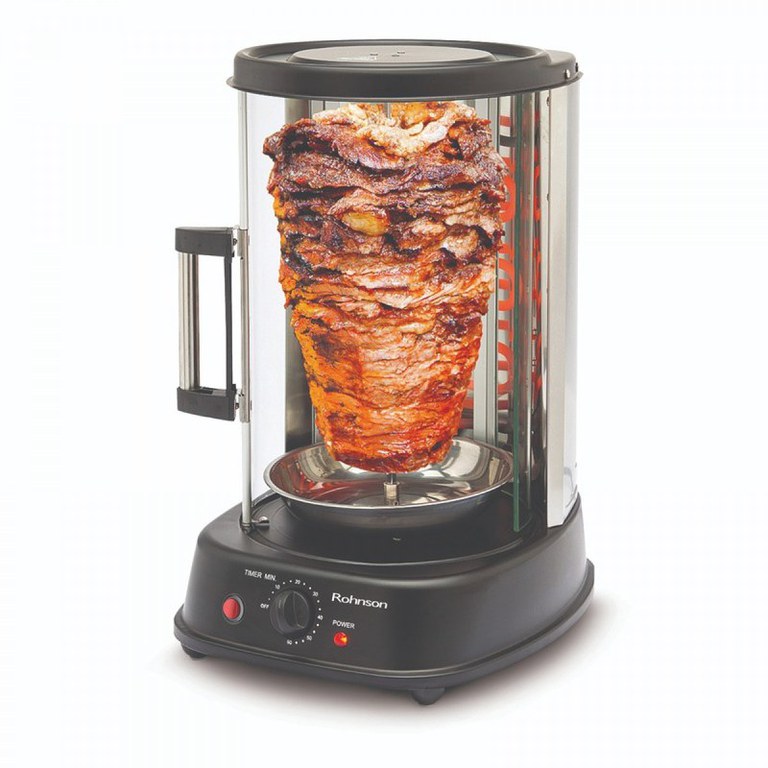 Grătar vertical Rohnson R-2530 Grătarul vertical Rohnson R-2530 este ideal pentru a găti pui, gyros, frigărui, pește și legume. Cu o putere de 1500 de wați, o capacitate de 21 de litri și un design patentat pentru gătit rapid, este perfect pentru orice bucătărie. Are un temporizator de 60 de minute cu oprire automată, o ușă mare din sticlă glisantă și un buton pentru a controla puterea elementului de încălzire. Mânerul izolat termic și tava de picurare asigură siguranță și o întreținere ușoară. Designul compact și multitudinea de accesorii îl transformă într-un ajutor versatil pentru gătitul zilnic. Care sunt avantajele modelului Rohnson R-2530? 1. Ideal pentru o varietate de feluri de mâncare Grătarul vertical Rohnson R-2530 este ajutorul perfect pentru prepararea de pui, gyros, frigărui, pește și legume. Datorită designului său patentat, acesta oferă o gătire rapidă și eficientă cu o putere de 1500 W. Cu o capacitate de 21 de litri, oferă suficient spațiu pentru experimentele dvs. culinare. În plus, are un temporizator de 60 de minute cu oprire automată, asigurându-se că preparatele dvs. sunt întotdeauna perfect pregătite. 2. Practic și ușor de utilizat Grătarul este proiectat cu gândul la confortul utilizatorului. Ușa glisantă mare din sticlă și mânerul izolat termic asigură siguranță și confort în timpul manipulării. Butonul de control al puterii elementului de încălzire permite reglarea temperaturii la nivel scăzut sau ridicat, după cum este necesar. O tavă de scurgere pentru excesul de grăsime și o suprafață ușor de curățat asigură o întreținere rapidă și ușoară a grătarului. 3. Design compact cu o multitudine de accesorii Grătarul vertical Rohnson R-2530 este compact, măsurând 33,4 cm în adâncime, 28,2 cm în lățime și 45 cm în înălțime, și cântărește doar 5,8 kg. Lungimea cablului de alimentare este de 81 cm, ceea ce oferă multă flexibilitate la poziționarea grătarului. Sunt incluse o mulțime de accesorii, inclusiv o spiță cu furculițe, o tavă de picurare și șapte ace de frigărui, pentru a profita la maximum de acest grătar multifuncțional. 4. Sugestie pentru prepararea gyros-ului Puteți prepara gyros tradițional în propria bucătărie. Pur și simplu înfigeți carnea pregătită în prealabil (în funcție de gust, unii preferă carnea de pui, gât de porc sau berbec) pe o țepușă în formă de con. La grătar, carnea se taie apoi în formă de con, se taie capetele rumenite și carnea se frige în continuare. ATENȚIE! Bobina de încălzire trebuie întotdeauna oprită înainte de a deschide ușa, în mod ideal lăsând-o să se răcească cel puțin pentru scurt timp. Apoi, deschideți ușa, feliați carnea, închideți ușa și porniți din nou bobina de încălzire. Carnea preparată poate fi servită apoi pe o farfurie cu legume tocate sau pusă în pâine sau pită prăjită și nu uitați de tzatziki.