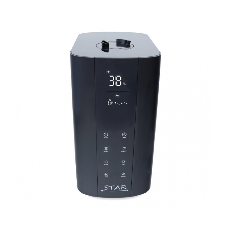 Umidificator cu ultrasunete cu sistem cu plasmă și aromaterapie Airbi STAR Umidificatorul cu ultrasunete Airbi STAR pentru un aer curat și sănătos vă ajută să asigurați condiții climatice optime în locuința dumneavoastră. Modelul STAR aparține aparatelor multifuncționale (3 aparate în 1), deoarece, pe lângă funcția de bază de umidificare a aerului, este echipat și cu un sistem PLASMĂ (ajută la purificarea aerului) și o cutie de arome, în care utilizatorul poate adăuga uleiuri esențiale și beneficia astfel de efectele benefice ale aromaterapiei. Modelul STAR impresionează de la prima vedere cu designul său negru de lux și o gamă largă de funcții, cum ar fi timpul de funcționare reglabil (temporizator), modul de noapte, posibilitatea de a adăuga opțiunea unei indicații sonore și vizuale a unui recipient de apă gol sau posibilitatea de a controla dispozitivul cu ajutorul telecomenzii incluse în accesorii. Utilizatorii mai pretențioși vor aprecia duza de ieșire pivotantă multidirecțională, afișajul LCD mare și clar, atenuarea sau oprirea completă a luminii albastre (de ex. pentru copii, ca să nu adoarmă) sau recipientul de apă suficient de mare și ușor de umplut, cu un mâner de transport practic. Avantajul umidificatorului cu ultrasunete STAR este performanța sa ridicată cu un consum de energie foarte redus. Umidificatorul Airbi STAR emite abur curat și proaspăt în aer. Cu ajutorul unui filtru antibacterian și al unui filtru de apă, acesta captează substanțele minerale conținute în apă și previne dispersia ulterioară a acestor particule. Aparatul este echipat cu un higrostat și termometru digital încorporat. Utilizatorii umidificatorului Airbi STAR pot alege între 4 moduri de funcționare (modul SMART - modul inteligent, în care dispozitivul stabilește o valoare țintă a umidității pe care încearcă să o mențină în funcție de temperatura ambientală, modul MANUAL - utilizatorul stabilește intensitatea evacuării şi intensitatea țintă a umidității pe care dorește să o mențină, modul CHILD - aparatul încearcă să mențină o umiditate de 55%, sistemul opțional PLASMA și funcțiile opționale de reîncălzire sunt activate) și alegeți modul care se potrivește cel mai bine nevoilor sale. Prin ce se evidenţiază Airbi STAR? 1. Unitate multifuncțională În plus față de funcția de umidificare de bază, este echipat cu un sistem PLASMĂ (pentru a ajuta la purificarea aerului) și o cutie de arome, în care utilizatorul poate adăuga uleiuri esențiale, beneficiind astfel de efectele benefice ale aromaterapiei. Umidificatorul Airbi STAR emite abur curat și proaspăt în aer. Cu ajutorul unui filtru antibacterian și al unui filtru de apă, acesta captează substanțele minerale conținute în apă și previne dispersia ulterioară a acestor particule. Aparatul este echipat cu un higrostat și termometru digital încorporat. 2. Design negru de lux cu afișaj LCD Modelul STAR impresionează de la prima vedere prin designul său negru de lux și o gamă largă de funcții, cum ar fi timpul de funcționare reglabil (temporizator), modul de noapte, posibilitatea de indicare sonoră și vizuală a unui rezervor de apă gol sau posibilitatea de a controla dispozitivul cu ajutorul telecomenzii incluse în accesorii. Operarea este gestionată de un afișaj LCD clar, cu posibilitatea de a reduce sau de a opri complet lumina albastră. 3. Mai multe moduri de lucru Utilizatorii Airbi STAR pot alege între 4 moduri de funcționare: SMART - un mod inteligent în care dispozitivul își stabilește singur o valoare țintă a umidității pe care încearcă să o mențină în funcție de temperatura ambientală. MANUAL - utilizatorul reglează manual intensitatea aburilor de ieșire. AUTO - utilizatorul stabilește umiditatea țintă pe care dorește să o mențină CHILD - aparatul încearcă să mențină o umiditate de 55%, cu funcțiile opționale ale sistemului PLASMA și reîncălzirea pornite), alegând astfel modul care se potrivește cel mai bine nevoilor sale. 4. Alte caracteristici Utilizatorii mai pretențioși vor aprecia duza de ieșire rotativă multidirecțională, afișajul LCD mare și clar, atenuarea sau oprirea completă a iluminării albastre (de ex. pentru copii, ca să nu adoarmă) sau recipientul de apă mare și ușor de umplut , cu un mâner de transport practic.