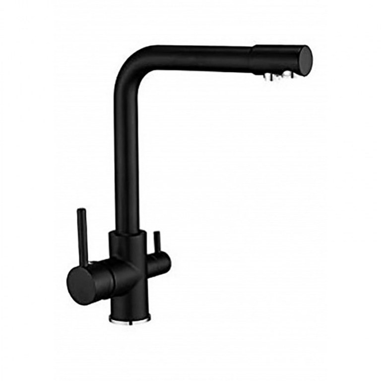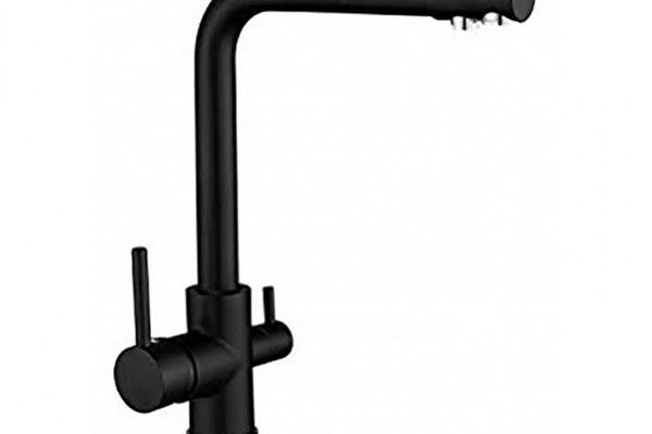 Baterie cu 3 cai Krausen finisaj Negru mat 202BL, pentru chiuveta din bucatarie. Se conecteaza la sursa de apa pentru alimentare cu apa rece, apa calda si apa plata filtrata.