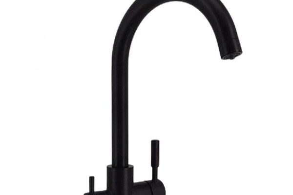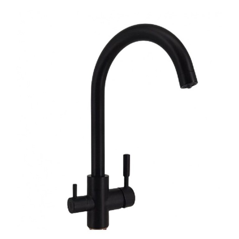 Baterie cu 3 cai model Clasic Negru Granit Krausen, pentru chiuveta din bucatarie. Se conecteaza la sursa de apa pentru alimentare cu apa rece, apa calda si apa plata filtrata.