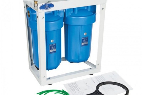 Sistem de filtrare Big Blue 10 in 2 etape, de inalta eficienta cu platforma metalica, manometre si adaptoare de conectare, fabricat din componente certificate NSF si WRAS.