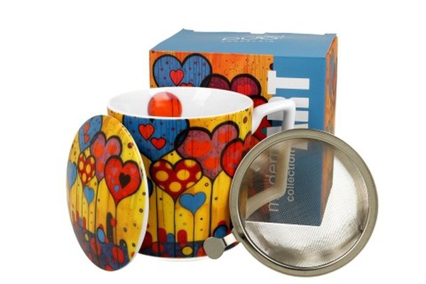 Cana cu capac portelan si infuzor inox, 450ml, Modern Hearts