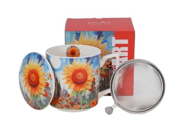 Cana cu capac portelan si infuzor inox, 450ml, Modern Sunflower