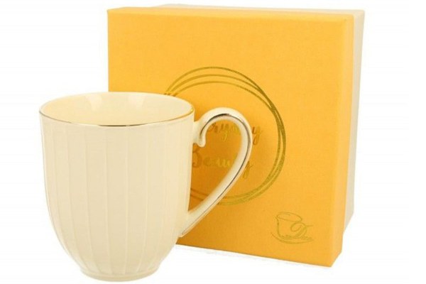 Iata un cadou elegant care sigura ii va impresiona pe iubitorii de ceai cu gusturi fine: cana din colectia Nina, una dintre cele mai apreciate, de altfel. Este realizata din portelan fin, de cea mai buna calitate, de culoare bej deschis. Este decorata cu striatii si linii aurii. Cana este ambalata intr-o cutie cadou la fel de eleganta, gata de a fi oferita unei persoane dragi. Capacitate: 400 ml