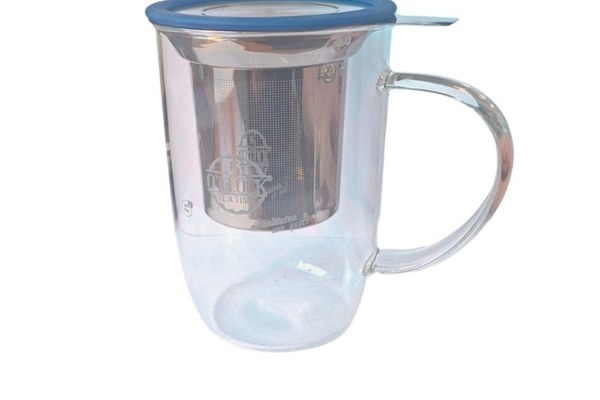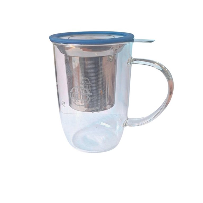 Cana transparenta cu infuzor si capac Albastru 5 O'Clock Tea (350ml)