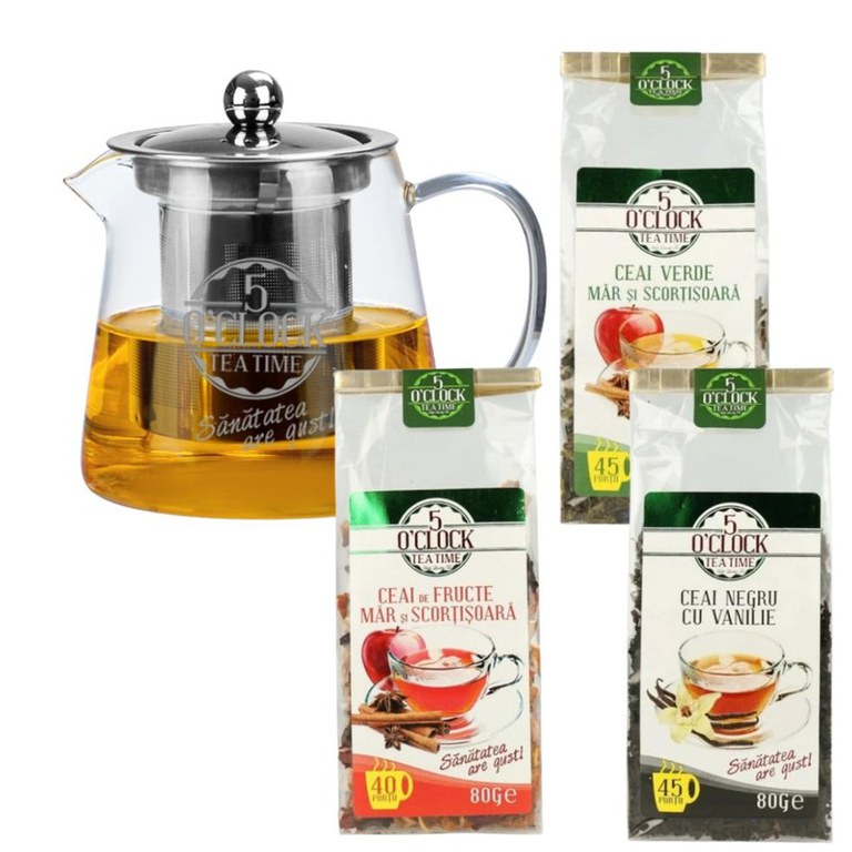 ? Christmas Aroma Tea Set – Magia Crăciunului în fiecare infuzie Transformă fiecare zi de iarnă într-un moment plin de confort și aromă cu Christmas Aroma Tea Gift Set – pachetul creat special pentru cei care adoră să simtă spiritul sărbătorilor în ceașca lor de ceai. Combinând un ceainic elegant cu infuzor metalic și trei dintre cele mai parfumate ceaiuri 5 O’Clock Tea, acest set este pregătit să ofere bucurie instantă, fie că îl dăruiești sau îl păstrezi pentru tine. În centrul pachetului se află ceainicul premium din sticlă borosilicată, rezistent la temperaturi ridicate, cu infuzor din oțel inoxidabil — perfect pentru a extrage arome bogate și clare, ideale pentru sezonul rece. Capacitatea sa generoasă îl transformă în companionul ideal pentru seri relaxante, filme de Crăciun sau momente petrecute alături de cei dragi. Aromele din set te vor duce direct în atmosfera de iarnă: ? Ceai de Fructe Măr & Scorțișoară – 80 g O infuzie caldă, dulce, cu note de măr copt și scorțișoară — aroma iconică a sărbătorilor. Perfect pentru seri liniștite și pentru momente de cozy indulgence. ? Ceai Verde Măr & Scorțișoară – 80 g Răcoros și parfumat, cu o notă subtilă de scorțișoară, acest blend aduce un echilibru între energia ceaiului verde și confortul aromelor de iarnă. ? Ceai Negru cu Vanilie – 80 g Elegant, catifelat și ușor cremos, cu vanilie fină — ideal pentru diminețile de decembrie sau pentru o pauză caldă în mijlocul unei zile pline. ✨ De ce îl vei iubi: Arome perfecte pentru sezonul de iarnă, inspirate de deserturi și miresme festive Ceainic premium, ideal pentru infuzii clare și pline de savoare Pachet excelent pentru cadouri de Crăciun Potrivit pentru orice moment: dimineață, după-amiază, seară Creează o atmosferă cozy imediat ce începi infuzia ? Cadoul perfect de Crăciun Un set elegant, gata de dăruit, potrivit pentru familie, prieteni, colegi sau oricine iubește ceaiul. Aromele incluse sunt versatile, festive și apreciate de publicul larg, ceea ce îl face o alegere sigură și rafinată.