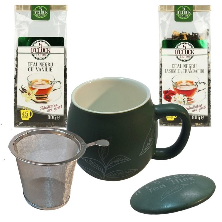 Există pauze care nu te scot din ritm, ci te reașază în el. Infuzie de energie este un ritual gândit pentru dimineți clare sau după-amieze în care ai nevoie de continuitate și tonus, fără grabă și fără exces. O cană de ceai bine ales, preparată simplu, poate schimba felul în care îți continui ziua. Ce conține pachetul 5 O’Clock Tea Ceai Negru cu Vanilie 80 g – un ceai cu gust rotund și note calde, potrivit pentru momentele în care vrei energie constantă și confort. 5 O’Clock Tea Ceai Negru Iasomie și Trandafiri 80 g – adaugă o dimensiune florală fină, care echilibrează intensitatea ceaiului negru. Moment Verde, cană din ceramică cu infuzor, 350 ml – permite prepararea ceaiului vrac direct în cană, într-un mod ordonat și ușor de integrat în rutina zilnică. De ce funcționează bine împreunăCele două ceaiuri oferă variație fără a complica alegerea: unul mai intens și reconfortant, celălalt mai delicat și aromat. Cana cu infuzor aduce simplitate și control, transformând prepararea într-un gest firesc, nu într-un efort. Împreună, creează un ritual coerent pentru momentele în care ai nevoie de energie funcțională. Pentru cine este potrivit Pentru diminețile de lucru la birou, când vrei un start clar și previzibil. Pentru pauzele de acasă, între activități, fără a pierde ritmul zilei. Pentru cei care preferă ceaiul negru ca alternativă constantă la cafea. Ca dar util și bine ales pentru cineva aflat la început în lumea ceaiului. Infuzie de energie este despre echilibru și continuitate: un mod simplu de a-ți susține ziua, cană după cană.