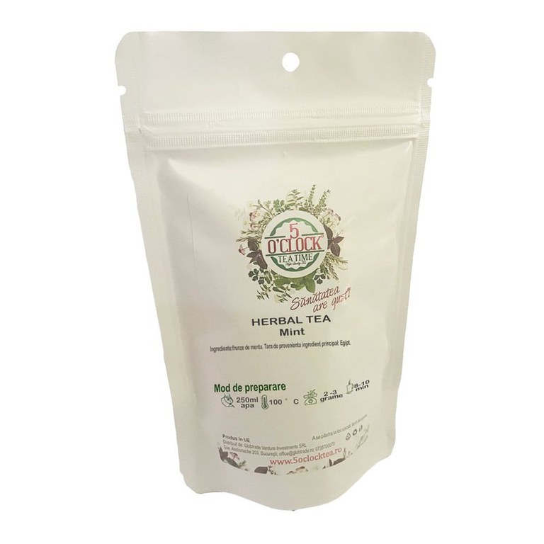 Consumata in alimentatie, menta are numeroase beneficii pentru sanatate. Asadar, fie ca alegeti sa consumati un ceai simplu de menta, fie ca o folositi in alte preparate, e bine sa stiti macar cateva dintre beneficiile acestei plante. Menta influenteaza secretia sucului biliar si faciliteaza digestia grasimilor, inlatura problemele intestinale, detoxifica organismul, aduce beneficii asupra tubului digestiv, respiratiei, circulatiei, avand si un efect de calmare. Ingrediente: frunze de menta. Tara de provenienta ingredient principal: Egipt. Produs in UE. Merge cu: friptura de porc sau vita, salate, ciocolata. Recomandari de servire: Se poate consuma cald sau rece. Mod de Preparare: Pentru a prepara o ceasca de ceai, adaugati apa fierbinte ( 100°C) peste o lingurita cu ceai (aproximativ 2-2.5 gr) si lasati la infuzat timp de 8-10 minute. Dozaj portie 2-2.5 grame Temperatura apa 100°C Timp de preparare 8-10 minute Valori nutritionale Per 100g Nivel teina Energie (kj/kcal) 18/4 Grasimi 0g din care acizi grasi saturati 0g Carbohidrati 0g din care zaharuri 0g Proteine 0g Sare 0.03g