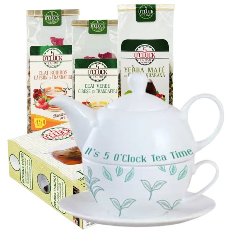 Mix Tea Lover’s Kit este alegerea ideală pentru cei care vor să se bucure de diversitate în fiecare ceașcă. De la notele calde și dulci ale rooibosului, la prospețimea ceaiului verde și energia naturală a mate-ului, acest set oferă o experiență completă pentru toate momentele zilei. Ce conține pachetul: Tea for One „It’s Tea Time” – set ceramic elegant (380 ml + 320 ml) 5 O’Clock Tea Rooibos cu Căpșuni și Trandafiri – 80 g 5 O’Clock Tea Ceai Verde cu Cireșe și Trandafiri – 80 g 5 O’Clock Tea Mate cu Ginkgo și Guarana – 80 g Filtre nețesute – 100 bucăți/cutie De ce îți va plăcea: Combinație perfect echilibrată între trei tipuri de infuzii: energizantă, delicată și relaxantă. Arome naturale de fructe și flori, cu note dulci și ușor citrice. Setul Tea for One îți permite o preparare elegantă, rapidă și individuală. Filtrele nețesute asigură o infuzie curată, fără frunze în ceașcă. Ideal pentru iubitorii de ceaiuri variate sau pentru un cadou special. Recomandare de preparare: Pentru ceai verde: 1–2 g/250 ml, 80°C, 2–3 minute. Pentru rooibos și mate: 2–3 g/250 ml, 90–95°C, 5–8 minute. Ajustează timpul în funcție de intensitatea dorită. Un set versatil, care aduce împreună aromele lumii ceaiului – de la calm la energie, într-o singură experiență.