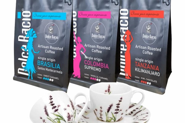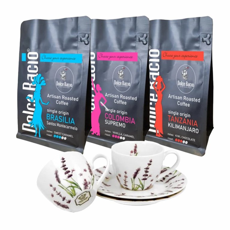 Pachet Degustare Dolce Bacio Artisan – 3 Cafele Single Origin + Set de Cesti Espresso