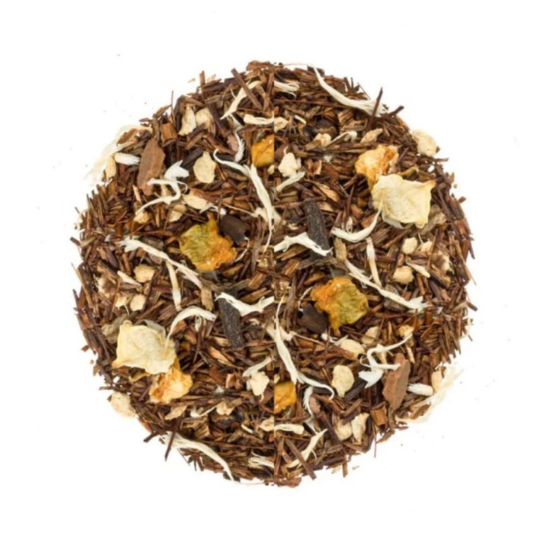 Un ceai sezonier, care te ajuta sa intri in cel mai frumos mod in atmosfera specifica Sarbatorilor Iernii! O fuziune neobisnuita intre dovleacul dulce si aroma revigoranta a ghimbirului in combinatie cu condimente specifice precum cuisoarele si scortisoara iti trezesc simturile si au deopotriva efecte stimulante asupra imunitatii. Acesta nu contine teina, motiv pentru care poate fi consumat chiar si seara. Se poate servi atat rece cat si fierbinte. Ingrediente: rooibos rosu (65.5%), ghimbir, dovleac, scortisoara, cuisoare, albastrele albe, arome. Poate contine urme de nuci. Tara de provenienta a ingredientului principal: Africa de Sud. Produs in UE. Merge cu: tarte, cheesecake, salata de fructe. Recomandari de servire: Pentru a imbogati si mai mult gustul adauga o felie de lamaie sau de portocala, sau putina scortisoara. Mod de Preparare: Pentru a prepara o ceasca de ceai, adaugati apa fierbinte ( 100°C) peste o lingurita cu ceai (aproximativ 3 gr) si lasati la infuzat timp de 6-8 minute. Pentru Ice Tea folositi o cantitate dubla de ceai (6 grame) si adaugati cuburi de gheata dupa infuzare. Dozaj portie 3 grame Temperatura apa 100°C Timp de preparare 6-8 minute Valori nutritionale Per 100g Nivel teina Energie (kj/kcal) 18/4 Grasimi 0g din care acizi grasi saturati 0g Carbohidrati 0g din care zaharuri 0g Proteine 0g Sare 0.03g