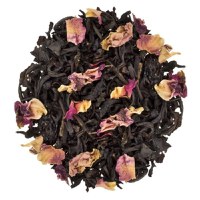 Nu este o intamplare faptul ca acest sortiment de ceai a fost numit Rose Garden (gradina de trandafiri). Frunzele de ceai negru sunt imbogatite cu petale de trandafir, o combinatie senzationala atat in ceea ce priveste gustul ceaiului, cat si aspectul sau. Si pentru ca gustul impresionant sa fie complet, i s-au adaugat bucatele de caise si mango, niste fructe dulci care contrabalanseaza astringenta ceaiului negru. Trebuie sa incerci si tu acest ceai negru cu gust de fructe coapte, imbogatit cu aroma proaspata a petalelor de trandafir. Ingrediente: ceai negru, petale de trandafir (3%), stafide, caise, aroma, mango. Tara de provenienta ingredient principal: India. Produs in UE. Merge cu: deserturi pe baza de citrice, ciocolata neagra. Recomandari de servire: Intrucat ceaiul negru are un gust mai puternic, poti adauga in ceai o cantitate foarte mica de lapte. Mod de Preparare: Pentru prepararea unei cesti de ceai, adaugati apa fierbinte ( 100°C) peste o lingurita cu ceai (aproximativ 2 gr) si lasati la infuzat timp de 3 minute. Dozaj portie 2 grame Temperatura apa 100°C Timp de preparare 3 minute Valori nutritionale Per 100g Nivel teina Energie (kj/kcal) 18/4 Grasimi 0g din care acizi grasi saturati 0g Carbohidrati 0g din care zaharuri 0g Proteine 0g Sare 0.03g