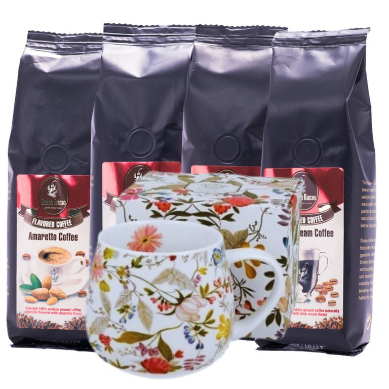 September Coffee Kit (4 pachete cafea macinata cu arome + Cana 430ml Art Flowers by W.Kilburn)
