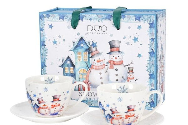 Set 2 cesti cu farfurii, portelan, 0.25 l, SNOWMAN