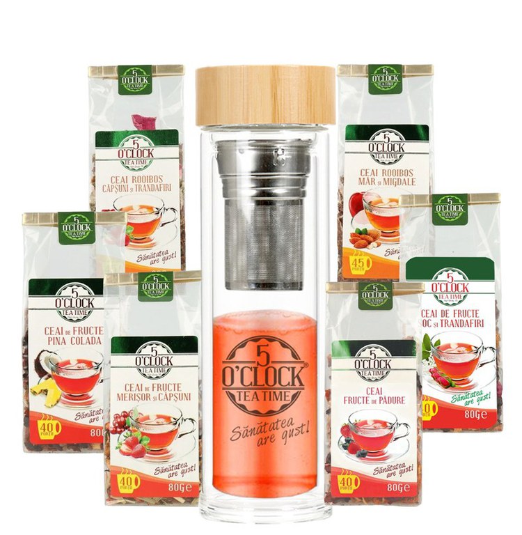 Winter Zen Fruit Kit by 5 O'Clock Tea este pachetul perfect pentru a aduce căldură și momente de relaxare în familie în sezonul rece. Acest kit include o selecție de ceaiuri din fructe și rooibos, ideale pentru a vă bucura de arome autentice și de o experiență reconfortantă alături de cei dragi. Fie că savurați ceaiurile în serile liniștite de iarnă sau căutați o băutură naturală și sănătoasă pentru zilele reci, Winter Zen Fruit Kit este alegerea ideală. Conținut Pachet: ZenBrew de la 5 O'Clock Tea este Fabricata din sticla borosilicata de inalta calitate, cunoscuta pentru rezistenta sa la temperaturi ridicate, si echipata cu un infuzor din otel inoxidabil, aceasta sticla iti permite sa prepari ceaiul preferat oriunde te afli, fara a folosi alte materiale de unica folosinta care contribuie la poluare. Ceai de Fructe Pina Colada (80g) – Aroma exotică de ananas și nucă de cocos aduce o senzație de vacanță tropicală, perfectă pentru a contrasta cu zilele reci de iarnă. 5 O'Clock Tea Fructe de Pădure (80g) – Gustul intens de fructe de pădure creează o băutură plină de antioxidanți, potrivită pentru un plus de sănătate și bună dispoziție. 5 O'Clock Tea Fructe de Soc și Trandafir (80g) – Cu note de fructe de soc și trandafiri, acest ceai aduce o aromă florală și ușor acrișoară, perfectă pentru o infuzie caldă și reconfortantă. 5 O'Clock Tea Merișor și Căpșuni (80g) – Delicios și plin de vitamine, acest amestec de merișor și căpșuni oferă o infuzie dulce și reconfortantă, ideală pentru serile petrecute în familie. 5 O'Clock Tea Rooibos cu Căpșuni și Trandafiri (80g) – Fără cafeină și perfect pentru toată familia, rooibosul cu căpșuni și trandafiri are o aromă dulce și relaxantă, potrivită pentru momentele de liniște. 5 O'Clock Tea Rooibos cu Măr și Migdale (80g) – Această combinație de măr și migdale aduce o aromă de desert într-o ceașcă de ceai, fiind alegerea perfectă pentru serile de iarnă. Ce sunt Ceaiurile din Fructe? Ceaiurile din fructe sunt băuturi naturale, fără cafeină, păstrând aromele autentice ale fructelor. Fiecare ceașcă oferă o plăcere dulce și sănătoasă, potrivită pentru toate vârstele. De ce să alegeți Winter Family Fruit Kit? Bucurie în Familie: Fiecare ceai din acest kit aduce o experiență deosebită, oferind o varietate de arome care vor satisface preferințele tuturor membrilor familiei. Hidratare și Sănătate: Ceaiurile din fructe și rooibos sunt bogate în vitamine și antioxidanți, susținând sistemul imunitar și oferind o hidratare sănătoasă. Alternativă Naturală: Înlocuiți băuturile acidulate cu infuzii sănătoase și gustoase, perfecte pentru o băutură caldă în sezonul rece. Cum să preparați ceaiurile fierbinți cu Winter Family Fruit Kit: Adaugă ceaiul preferat: Pune 1-2 lingurițe de ceai din pachetul Winter Family Fruit Kit în infuzorul din oțel inoxidabil al sticlei cu infuzor 5 O'Clock Tea. Adaugă apă fierbinte: Toarnă apă fierbinte (100°C) în sticlă. Infuzează: Închide sticla și lasă ceaiul la infuzat timp de 5-7 minute, în funcție de intensitatea dorită. Savurează: Bucură-te de un ceai cald, aromat și plin de gust, alături de cei dragi. Concluzie Cu Winter Family Fruit Kit by 5 O'Clock Tea , poți crea momente de bucurie și căldură pentru toată familia, savurând infuzii aromate și sănătoase în sticlele premium cu infuzor. Este un mod minunat de a petrece timpul împreună și de a aduce un plus de sănătate în fiecare zi de iarnă.