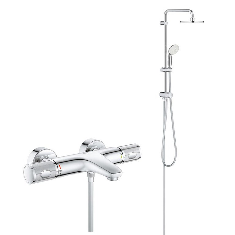 Coloana cada/dus cu termostat, Grohe Grohtherm Performance, palarie 200mm, para dus 1 tip jet,crom(34779000,27389002)