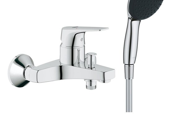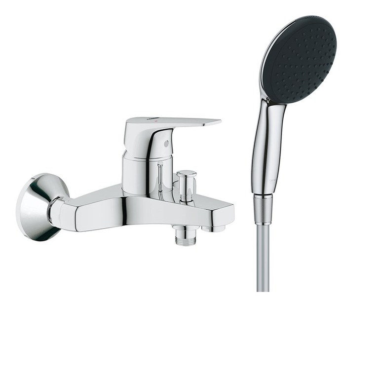Pachet baterie cada Grohe Bauflow, set dus inclus( 23756000 , 26720001 ) Baterie cada: Caracteristici cheie montare pe perete mâner din metal cartuș ceramic de 46 mm GROHE SmoothControl suprafaţă GROHE LongLife limitator de debit reglabil divertor cu revenire automată: cadă/duş pipă cu aerator scurgere duş inferioară 1/2"cu supapă integrată contra refluxului conexiuni excentrice ornamente metalice protecţie împotriva refluxului Set dus: Caracteristici cheie compus din: hand shower Vitalio Start 110 (27 940) shower hose VitalioFlex Trend 1500 mm 1/2" x 1/2" (28 741) GROHE EcoJoy tehnologie pentru reducerea consumului de apă pulverizare perfectă cu tehnologia GROHE DreamSpray suprafaţă GROHE LongLife sistem anti-calcar GROHE SpeedClean Inner WaterGuide pentru o durabilitate crescută în utilizare protecție de silicon Shockproof ce previne deteriorarea cauzată de căderea duşului maximum flow rate (at 3 bar): 7.6 l/min presiunea minimă recomandată 1.0