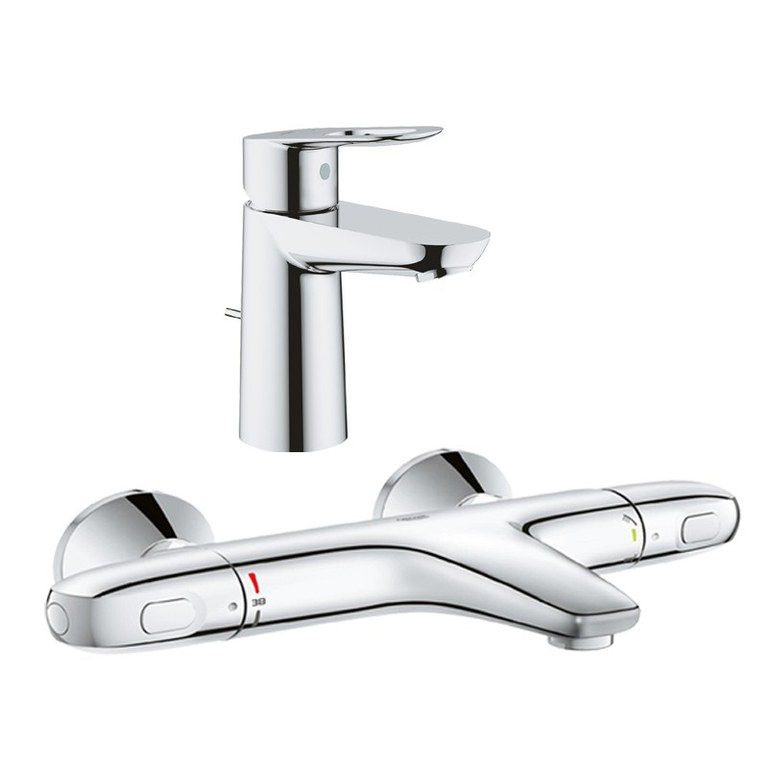Pachet: Baterie Grohe cada/dus termostat Grohtherm 1000-34155003 + Baterie baie lavoar Grohe Bauloop cod-23335000