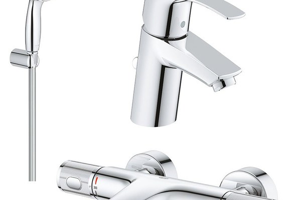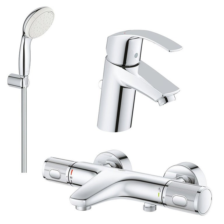 Pachet baterii baie cada,termostat Grohe Grohtherm 1000 Performance ,set dus porter, baterie lavoar Eurosmart S(34779000,33265002,27799001)