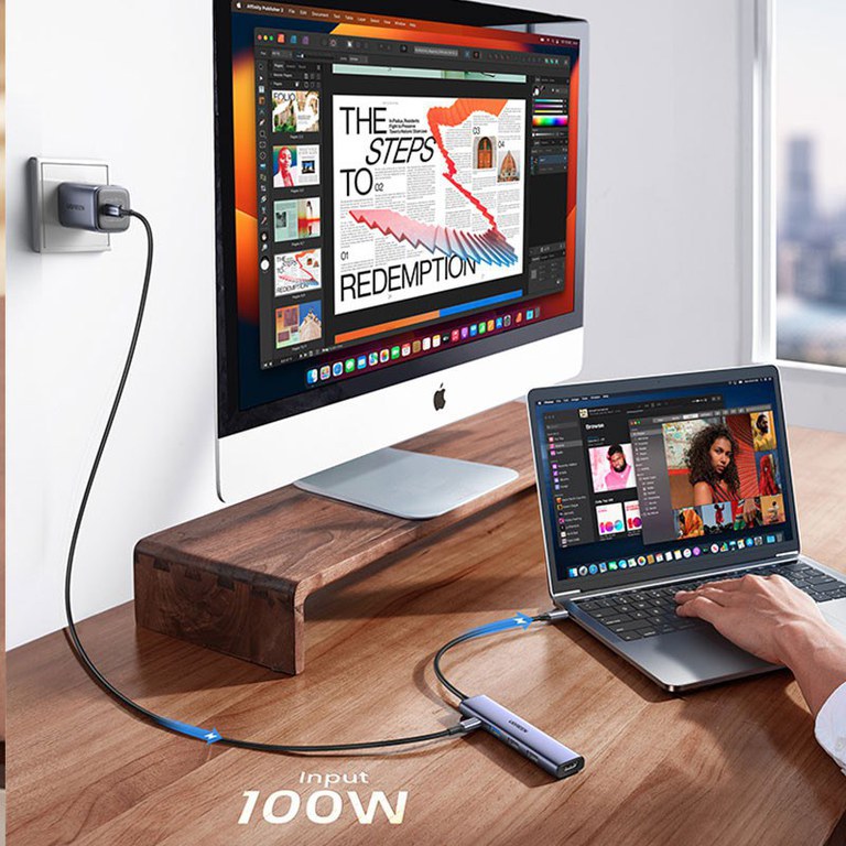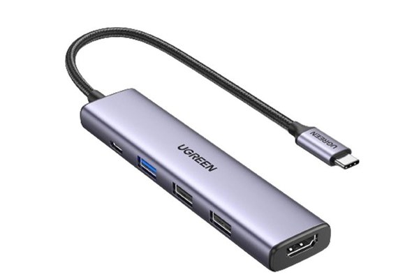 Adaptor multifunctional 5-in-1 UGREEN USB-C Adapter , 1X USB 3.0, 2X USB 2.0, 1X HDMI 4K,USB-C 100W PowerDelivery, Gri