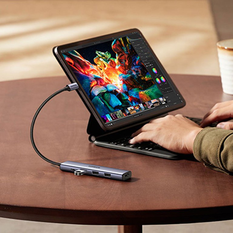Adaptor USB-C UGREEN 5-in-1 – Conectivitate extinsa pentru laptop si tableta Adaptorul multifunctional UGREEN 5-in-1 USB-C ofera extinderea porturilor pentru laptopuri si tablete, fiind compatibil cu o gama larga de dispozitive MacBook, Windows, iPad Pro si multe altele. Portul HDMI 4K @ 30Hz permite conectarea unui monitor sau proiector, oferind o experienta vizuala de inalta definitie, ideala pentru munca sau divertisment. Pentru transfer rapid de fisiere, adaptorul include un port USB 3.0 de 5 Gbps, perfect pentru stick-uri USB, hard disk-uri externe si alte dispozitive de stocare. Cele doua porturi USB 2.0 sunt ideale pentru periferice precum tastaturi, mouse-uri sau imprimante. In plus, portul USB-C Power Delivery de 100W permite incarcare rapida si eficienta, mentinand productivitatea fara intreruperi. Cu un design compact si carcasa din aluminiu rezistent, acest hub USB-C este durabil si usor de transportat, fiind o alegere excelenta pentru birou, calatorii si utilizare zilnica. Compatibilitate extinsa, performanta rapida si constructie premium – adaptorul UGREEN este un accesoriu esential pentru cei care au nevoie de mai multe porturi fara a compromite mobilitatea. Adaptorul multifunctional 5-in-1 UGREEN USB-C are urmatoarele caracteristici: Viteza transmisie date: 5Gbps; interfata intrare: 1X USB 3.0, 2X USB 2.0, 1X HDMI 4K,USB-C 100W PowerDelivery; Interfata iesire: USB Type-C; Rata transfer date: 1 Gbit/s; Compatibilitate: universal USB Type-C. Calitate superioara a imaginii Cu un port HDMI compatibil 4K @ 30Hz, adaptorul Ugreen iti permite sa redai videoclipuri la cea mai inalta calitate. Indiferent daca pregatesti o prezentare sau vrei sa te bucuri de un film pe ecran mare, acest adaptor iti garanteaza o imagine clara, fara delay si fara nesincronizari intre sunet si imagine. Transfer de date de 5Gbps Incarcare USB-C PD de 100W Conectivitate 5-in-1 Compatibilitate larga Vezi si Politica de Returnare.