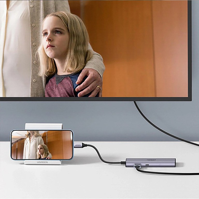 Adaptor multifunctional UGREEN CM512 – Solutia completa de conectivitate pentru dispozitivul tau UGREEN CM512 iti transforma portul USB-C intr-un centru de conectare versatil, ideal pentru birou sau calatorii. Intr-un design elegant din aluminiu, adaptorul iti ofera: ✔ 2 porturi USB-A 3.0 pentru conectarea rapida a perifericelor si transferul de date la viteze de pana la 5 Gbps ✔ HDMI 4K Ultra HD pentru afisare clara si fluida pe monitoare, televizoare sau proiectoare externe ✔ Port RJ45 Gigabit Ethernet pentru o conexiune la internet stabila si de mare viteza ✔ Slot SD si slot microSD (TF) – perfecte pentru fotografi, videografi si creatori de continut Adaptorul este compatibil cu laptopuri si tablete echipate cu port USB-C, inclusiv MacBook, Dell XPS, Lenovo, Huawei, Samsung si multe altele. Se conecteaza imediat, plug & play, fara a necesita drivere suplimentare. UGREEN CM512 combina performanta fiabila, designul premium si portabilitatea, oferindu-ti libertatea de a lucra eficient oriunde. Ideal pentru birou, acasa sau in deplasare. Adaptor multifunctional UGREEN USB C CM512 are urmatoarele caracteristici: Viteza transmisie date: 5 Gbps; Interfata intrare: 2 x USB-A 3.0, 1 x USB-C, 1 x HDMI, 1 x RJ45, 1 x SD, 1 x microSD; Interfata iesire: USB Type-C; Compatibilitate: universal USB Type-C. Calitate superioara a imaginii Bucura-te de o experienta vizuala impresionanta cu adaptorul UGREEN, echipat cu un port HDMI care iti permite sa redai imaginea pe un ecran mai mare. Acesta ofera o rezolutie uimitoare 4K la 30Hz (3840 x 2160), redand culori vii si detalii spectaculoase. Poti conecta laptopul la televizor in doar cateva secunde si te poti bucura alaturi de familie de filme, seriale sau videoclipuri la o calitate demna de un cinematograf, direct in confortul casei tale. Multiple posibilitati de utilizare Cu ajutorul sau poti conecta laptopul la un proiector pentru a sustine prezentari profesionale cu usurinta. In plus, datorita celor 2 porturi USB 3.0, poti conecta rapid toate dispozitivele de care ai nevoie – stick USB, mouse, tastatura, hard disk extern, camera foto sau imprimanta. Totul pentru o experienta de lucru si divertisment completa, oriunde te-ai afla. Transfer de date instant Cele doua porturi USB 3.0 asigura viteze de transfer de pana la 5 Gbps, astfel incat poti muta fotografii, videoclipuri, documente sau alte fisiere in doar cateva secunde. In plus, adaptorul este echipat cu sloturi pentru carduri SD si TF, care permit citirea si scrierea simultana a datelor la viteze de pana la 104 MB/s. Incarcare rapida pentru dispozitivele tale Datorita functiei de incarcare rapida Power Delivery (PD) de pana la 100 W, iti poti alimenta laptopul sau alte dispozitive intr-un timp record. De exemplu, in aproximativ 1,5 ore iti poti incarca complet bateria unui MacBook Pro sau MacBook Air. Astfel, te bucuri de eficienta si productivitate continua, fara pauze inutile. Compatibilitate extinsa Functii suplimentare Smartphone-ul sau tableta ta suporta OTG? Atunci te vei bucura sa afli ca adaptorul UGREEN este compatibil si cu aceasta functie. Astfel, poti reda confortabil videoclipuri, filme sau prezentari direct de pe telefon sau tableta pe un ecran mare, fara efort. Iar avantajele nu se opresc aici! Datorita portului RJ45 Gigabit Ethernet, te bucuri de o conexiune stabila si rapida, cu viteze de pana la 1000 Mbps, eliminand complet intreruperile si interferentele din reteaua ta. Vezi si Politica de Returnare.