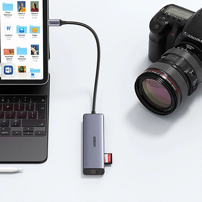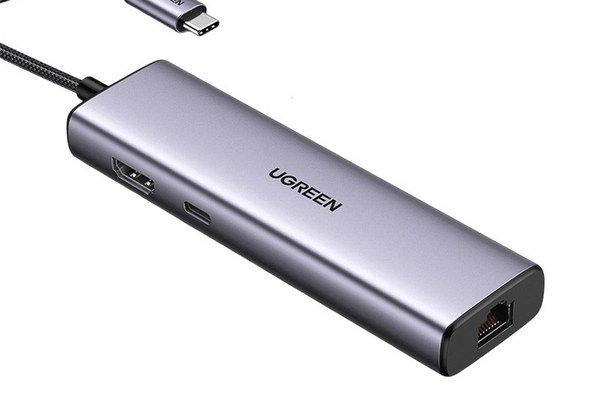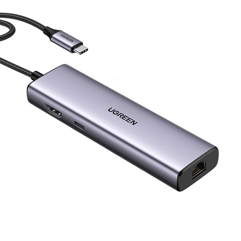 Adaptor multifunctional UGREEN USB C CM512, 2 x USB-A 3.0, 1 x USB-C, 1 x HDMI, 1 x RJ45, 1 x SD, 1 x microSD, Gri