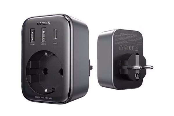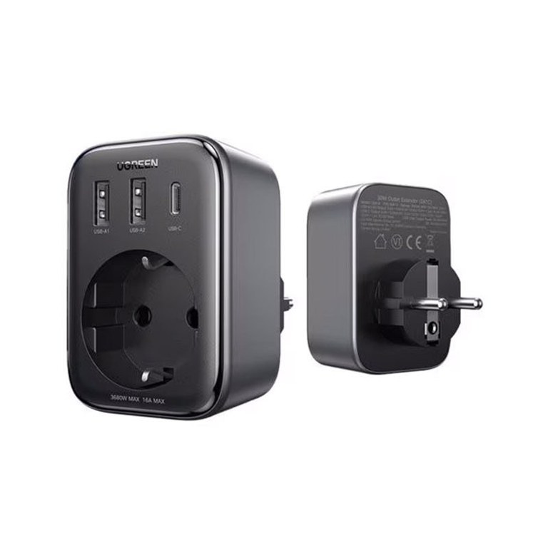 Adaptor UGREEN 30W Outlet Extender EU (2A1C) CD314, 2 x USB-A, 1 x USB-C, Negru