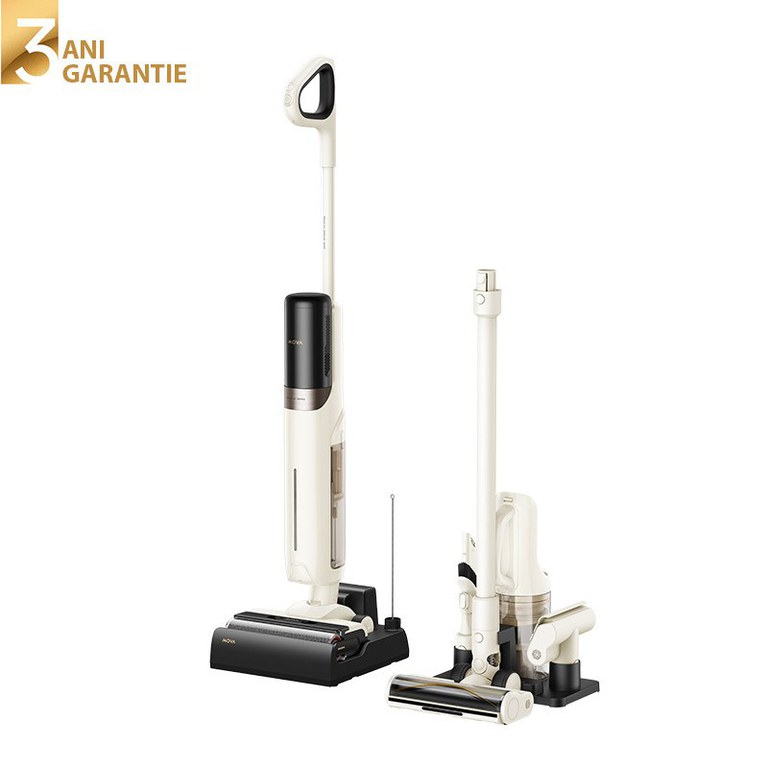 Curatarea zilnica devine mai rapida si mai controlata atunci cand aspirarea si spalarea sunt integrate intr-un singur proces. MOVA K30 Mix 2-in-1 combina o putere de aspirare de 18.000 Pa cu un sistem eficient de spalare cu apa curata, permitand indepartarea simultana a murdariei uscate, lichidelor varsate si petelor persistente de pe suprafete dure. Designul rabatabil la 180° faciliteaza accesul sub mobilier, in timp ce peria cu dubla margine asigura curatare precisa de-a lungul peretilor si plintelor. Functiile inteligente de ajustare automata a puterii, intretinerea simpla a periei si autonomia de pana la 30 de minute fac din MOVA K30 Mix o alegere practica pentru locuinte moderne, unde eficienta, controlul si rezultatele vizibile sunt esentiale. Aspirator vertical cu spalare MOVA K30 Mix 2-in-1 Vacuum cleaner are urmatoarele caracteristici: Garantie 3 ani (atat pentru persoane fizice cat si pentru persoane juridice) Putere de aspirare 18.000Pa; Tehnologie de spalare si uscare a periei la 60°C; Autonomie: pana la 30 min; Motor de 300 W; Recipient apa curata 600ml; Recipient apa murdara 500ml; Dispozitivul este dotat cu un acumulator de 2600mAh; Greutatea aspiratorului 4 kg. Putere de aspirare optimizata pentru curatare eficienta Cu o putere de aspirare de pana la 18.000 Pa, MOVA K30 Mix gestioneaza eficient atat murdaria uscata, cat si lichidele varsate sau petele persistente. Sistemul de aspirare mentine performanta constanta pe diferite tipuri de suprafete, asigurand o curatare uniforma dintr-o singura trecere. In acelasi timp, functionarea ramane silentioasa, permitand utilizarea confortabila chiar si cand o persoana se odihneste. Curatare in profunzime cu acces extins sub mobilier MOVA K30 Mix integreaza un design rabatabil la 180°, care permite acces facil in zone joase si greu de curatat. Astfel, dispozitivul permite indepartarea eficienta a prafului si resturilor acumulate sub mobilier, acolo unde curatarea obisnuita este limitata. Combinatia dintre pozitia joasa de lucru si puterea constanta de aspirare asigura o curatare temeinica a suprafetelor, inclusiv in spatii unde aspiratoarele standard nu pot ajunge. Curatare precisa de la margine la margine Peria cu dubla margine a MOVA K30 Mix este proiectata pentru curatarea eficienta de-a lungul peretilor si plintelor, acolo unde murdaria se acumuleaza cel mai des. Designul sau permite captarea prafului si a resturilor chiar din zonele de contact cu marginea suprafetei. Rezultatul este o curatare temeinica pana la 0 mm fata de perete, fara zone neatinse si fara a fi necesare miscari suplimentare. Curatare uniforma cu apa curata la fiecare trecere MOVA K30 Mix foloseste un sistem de spalare continua care furnizeaza constant apa curata pe perie, in timp ce apa murdara este indepartata simultan. Acest flux controlat mentine suprafata curata pe toata durata utilizarii si contribuie la un aspect vizibil mai uniform al podelei. Suprafete curate fara urme vizibile de apa MOVA K30 Mix a fost gandit pentru a reduce semnificativ urmele de apa dupa spalare, mentinand podelele curate si uniforme. Sistemul de colectare eficienta a apei murdare ajuta la uscarea rapida a suprafetei, fara dungi sau reziduuri vizibile, chiar si dupa o curatare intensa. Intretinere simpla si eficienta a periei MOVA K30 Mix permite curatarea rapida a periei printr-o singura apasare de buton, indepartand eficient reziduurile acumulate dupa utilizare. Procesul automat mentine peria curata si functionala, pregatita pentru urmatoarea sesiune de curatare, fara interventii manuale sau operatiuni suplimentare. Putere adaptata automat pentru fiecare tip de provocare MOVA K30 Mix ajusteaza automat nivelul de aspirare in functie de cerintele de curatare, adaptandu-se atat prafului fin, cat si resturilor mai mari. Sistemul inteligent optimizeaza performanta in timp real, mentinand eficienta ridicata si un consum echilibrat de energie pe toata durata utilizarii. Ghidare vocala pentru utilizare fara intreruperi MOVA K30 Mix ofera notificari vocale clare si mementouri utile pe parcursul utilizarii, ajutand la monitorizarea procesului de curatare si la gestionarea corecta a functiilor. Indrumarea in timp real asigura continuitatea sesiunilor, fara opriri neasteptate sau confuzii in utilizare. Auto Mode Low battery. Please charge. Please empty the Used Water Tank. Eliminarea separata a deseurilor pentru golire usoara Recipientul cu filtru integrat al MOVA K30 Mix separa eficient murdaria solida de deseurile lichide, facilitand golirea fara murdarire suplimentara. Aceasta separare previne infundarea scurgerilor si mentine procesul de eliminare simplu si controlat dupa fiecare utilizare. Vezi si Politica de Returnare.