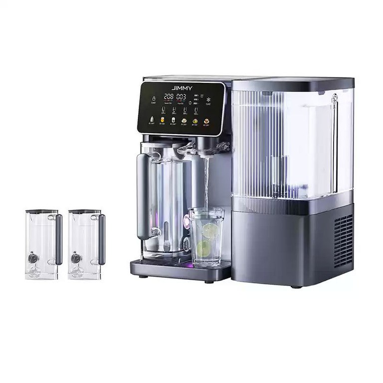 Descopera beneficiile unui pahar cu apa pura si sanatoasa oferite de Purificatorul de apa cu osmoza inversa JIMMY Countertop R9 PRO! Dispozitorul inovator iti pune la dispozitie o solutie eficienta si simpla pentru a te asigura ca apa pe care o consumi este curata, proaspata si fara impuritati. Cu un sistem de purificare avansat in 7 straduri si tehnologie UV integrata, R9 PRO elimina 99.9% din substantele daunatoare, precum metale grele, bacterii si PFAS, oferindu-ti apa de cea mai buna calitate, oricand ai nevoie. Designul compact si fara instalare iti permite sa beneficiezi de apa pura fara batai de cap, economisind timp si spatiu. Indiferent daca vrei sa te hidratezi dupa un antrenament sau sa pregatesti o cafea delicioasa, R9 PRO este alegereaoptima pentru familia ta. Purificator de apa cu osmoza inversa JIMMY Countertop Reverse Osmosis Water Purifier R9 PRO are urmatoarele caracteristici: Apa rece la 10°C-15°C; Apa calda instant in doar 3 secunde; Sistem avansat de purificare in 7 etape; Design compact pentru orice spatiu; Doua carafe detasabile si sterilizare UV integrata; Rezervor generos de 5,5L pentru apa ; Ecran smart cu touch si functie Child Lock (blocare copii); Inlocuire usoara si consum sustenabil; Purificare in 7 etape cu RO si sterilizare UV Savureaza apa calda si rece fara sa fii nevoit sa astepti 2 carafe din Tritan fara BPA Fara instalare, design compact – savureaza apa purificata oricand si oriunde. Rezervor mare de apa detasabil de 5.5 L Ce influenteaza sanatatea si gustul apei tale? Desi apa de la robinet este tratata pentru a fi sigura, aceasta poate contine substante care nu sunt eliminate prin fierbere si care pot afecta sanatatea si gustul apei. Fara instalare, fara batai de cap – Design compact cu rezervor lateral Uita de setarile complicate! Purificatorul JIMMY pentru blat functioneaza instantaneu – doar conectezi si te bucuri de apa pura si delicioasa la orice temperatura. Profilul sau eficient din punct de vedere al spatiului si designul rezervorului lateral economisesc spatiu pe blatul de lucru, oferind in acelasi timp apa purificata nelimitata. Simplu. Inteligent. Eficient. Protectie certificata de laborator – Filtreaza eficient peste 1000 de impuritati Elimina 99.9% din substantele daunatoare, garantand sanatatea si siguranta familiei tale. Filtru cu osmoza inversa Cu o precizie de filtrare de 0.0001 microni si o rata de eliminare a TDS de peste 99%, elimina semnificativ metalele grele si depunerile din apa. *Ciclul de inlocuire al filtrului variaza in functie de calitatea sursei de apa si de cantitatea de apa consumata. Sistem de filtrare in 7 etape cu sterilizare UV Pentru puritate de care te poti baza si gust pe care il vei adora. 1. Filtru din bumbac PP Filtreaza particule mari precum namol, rugina, murdarie. 2. Filtru din carbon activ Adsorbeaza clorul rezidual, cloramina, microplasticile, microorganismele. 3. Filtru din bumbac PP Filtreaza particule mari precum namol, rugina, murdarie. 4. Membrana cu osmoza inversa Elimina bacteriile, PFAS, HAA, TDS precum metale grele, sare si depuneri. 5. Carbon remineralizat din nuca de cocos Elimina clorul rezidual si mirosul, imbunatateste gustul, suplimenteaza mineralele. 6. Filtru din bumbac PP Filtreaza particule mari precum namol, rugina, murdarie. 7. Lumină UV Purificare continua, protejand sanatatea. Ecran tactil avansat cu setari personalizabile Raceste. Incalzește. Puritate. Iubeste-l. Cu racire si incalzire integrate, R9 Pro ofera apa rece la 10-15°C si apa calda la multiple temperaturi in cateva secunde. Carafe de apa din Tritan fara BPA cu sterilizare UV Carafa inovativa JIMMY dispune de sterilizare UV, prevenind eficient cresterea bacteriilor care pot aparea in carafele traditionale atunci cand nu sunt utilizate. Cu o rata de eliminare a bacteriilor de 99.9%*, asigura ca apa ta ramane sigura si curata, oferind protectie de lunga durata si liniste in fiecare utilizare. Savureaza oricand, oriunde cu carafele usor de utilizat R9 Pro este echipat cu 2 carafe portabile, oferind o optiune mai usoara de a lua si depozita apa curata. Gustul pur ca primavara Filtrul din carbon activ remineralizat din nuca de cocos imbogateste apa pura. Usurinta de utilizare fara egal Rezervorul detasabil de apa bruta de 5.5L este usor de umplut si curatat, in timp ce cele doua rezervoare de apa purificata de 1L asigura un flux constant de apa proaspata. In plus, filtrul detasabil face inlocuirea periodica rapida si simpla. Mai multe detalii te asteapta in experienta ta. Vezi si Politica de Returnare.