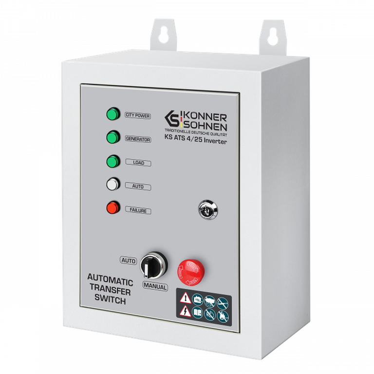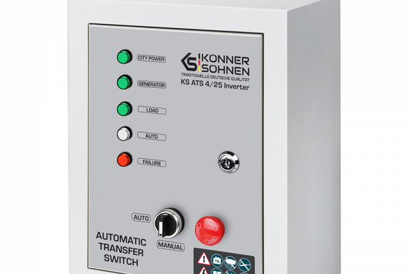 Caracteristici Unitatea Inverter ATS KS ATS 4 25 de la brandul german Könner Söhnen pornește automat generatorul și transferă sarcina către acesta atunci când sursa principală de alimentare este oprită și oprește automat generatorul...