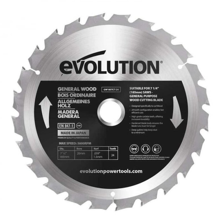 Disc pentru fierastrau circular, taiere lemn Evolution GW185TCT-24, O185 x 20 mm, 24 dinti