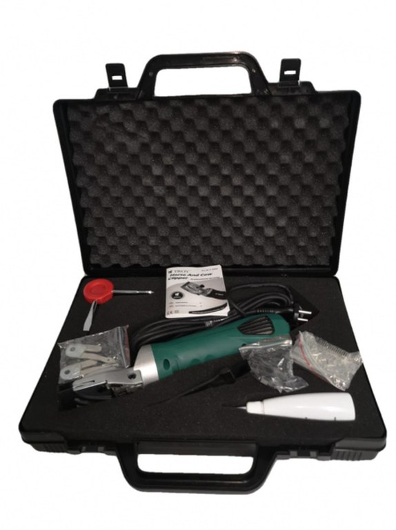 Caracteristici: Masina de tuns vine cu o lama atasata si una de rezerva Dispune de agatatoare textila Ajustaj rapid al ramelor Motor silentios cu putine vibratii Conceput pentru cai si bovine Date tehnice: Alimentare: 220-240 V Putere motor: 200 W Viteza:...