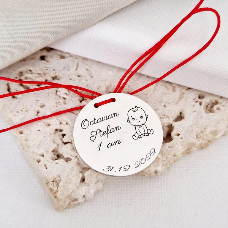 DESPRE PRODUS: Banutul este creat din Argint 925 prin taiere si gravare laser Acesta are diametrul de 25 mm Bijuteria vine insotita de o fundita rosie din snur Banutul este livrata in cutie premium Chic Bijoux Gravarea unui mesaj pe spatele pandantivului este gratuita Gramaj aproximativ ARGINT 925: 3.62 grame Aceasta bijuterie personalizata este realizata de la zero pentru fiecare comanda in parte. Dupa plasarea si confirmarea comenzii incepe procesul ei de creatie: Realizare Design -> Taiere/Personalizare -> Finisare manuala -> Polish Final -> Ambalare -> Livrare! Datorita procesului de productie si a personalizarii bijuteriei dupa propria dorinta gramajul final al produsului poate fi diferit. Din acest motiv pe site este afisat gramajul obtinut prin catarirea produsului realizat in pozele de prezentare. Pretul produsului include pe langa costul gramului de Argint 925 si tot procesul de mai sus, necesar pentru realizarea unui produs cu adevarat special pentru tine. Toate produsele din Argint 925 comercializate de Chic Bijoux sunt marcate cu titlul Argintului· 925 · Dupa plasarea comenzii va va contacta o colega din echipa Chic Bijoux pentru toate detaliile necesare personalizarii produsului.